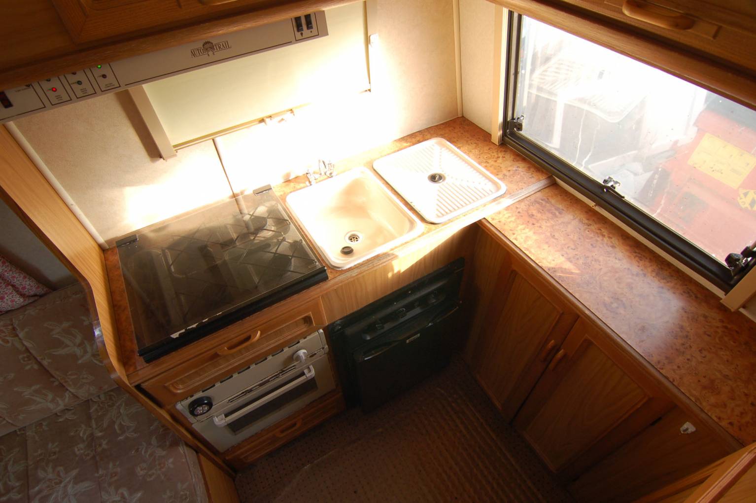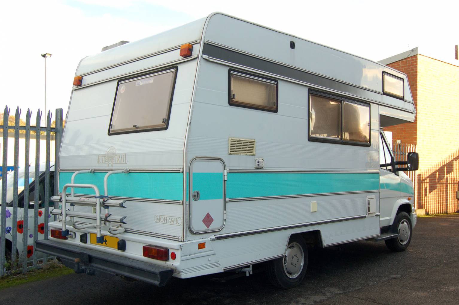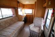 A very tidy little coachbuilt motorhome, with lots of attention lavished upon it recently. The Mohawk is a neat, end kitchen layout compact motorhome with add ons including power steering, solar panel, awning, bike rack, TV aerial. Very roomy and light interior, with swivel lounge chair, side settee and swivel passenger seat. The settee quickly converts into a double bed and there is another bed over the cab.