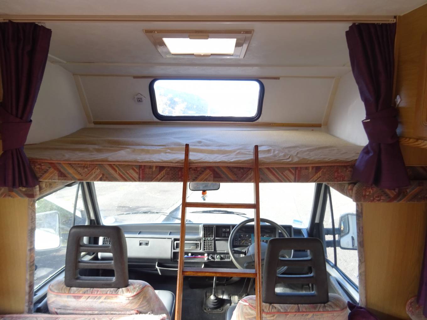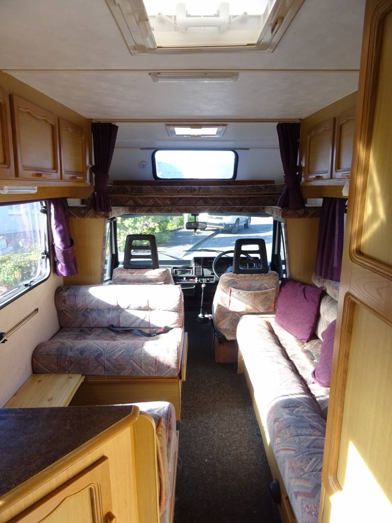 Above the cab is a large double bed with a window and a skylight which will easily sleep 2 adults or alternatively you can use this area as storage space. Down below in the driver cab you have excellent visibility all round and being only 5.91 metres long this motorhome is a doddle to drive and park.