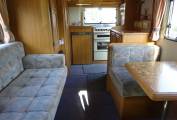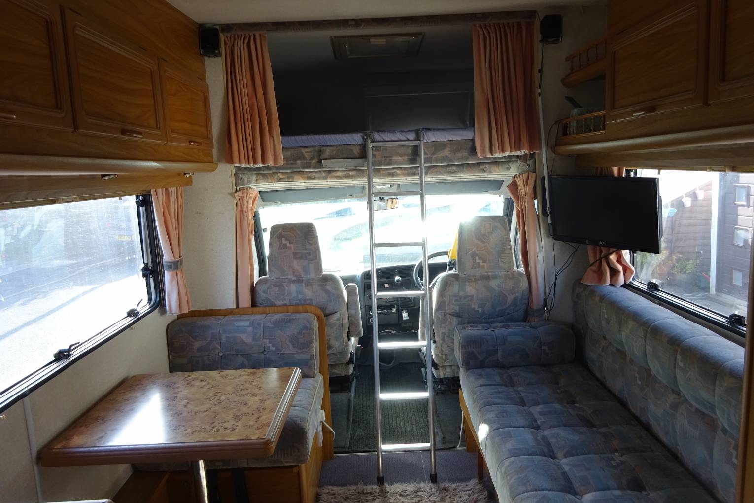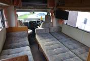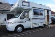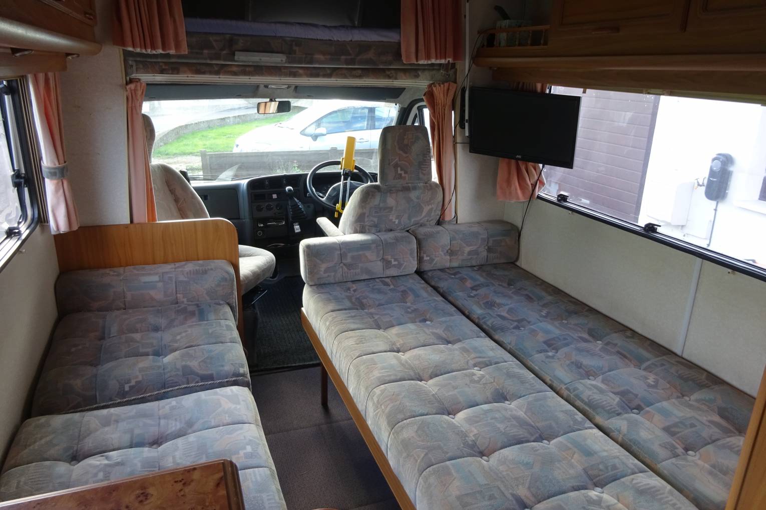 Presented in great condition throughout. Weight 3200kg, length 5.88 metres and width 2.3 metres. This 4/5 berth family motorhomes and has 2 x 3 point harness seat belts in the front and 3 lap belts in the back. There is a large comfortable double bed above the cab and the spacious lounge/dining area converts into a double and you can use the long bench seat as a single or make the bed into a very large double.