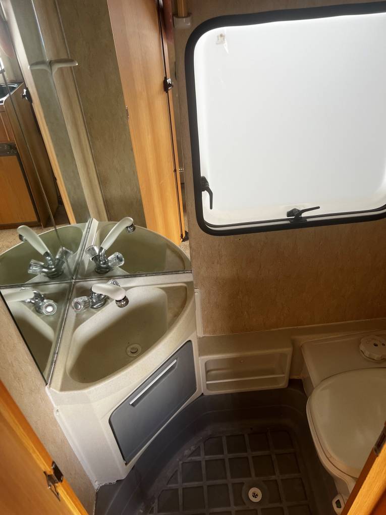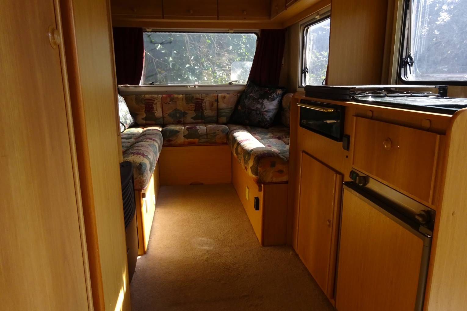 Towards the front is the washroom which has the standard Theford Toilet, handbasin where the tap converts into a shower hose.***There is also a very good sized over cab bed, with a lutton ladder and good headroom.