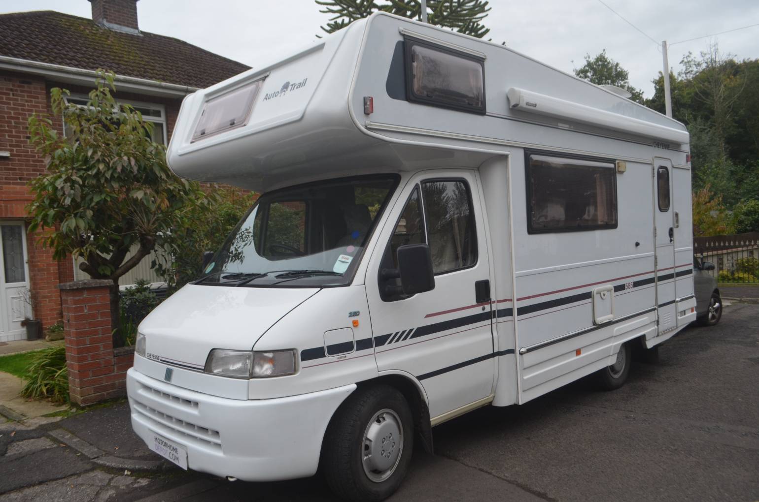 1997 AUTOTRAIL CHEYENNE 585 MOTORHOME FOR SALE. Based on a Fiat chassis with a 2.5 TD engine and 5 speed manual gear box. 72,236 miles travelled. Presented in great condition throughout. Weight 3200kg, length 5.88 metres and width 2.3 metres. This 4/5 berth family motorhomes has 5 travelling seat belts. There is a large comfortable double bed above the cab and the spacious lounge/dining area converts into a double and you can use the long bench seat as a single or make the bed into a very large double. End kitchen is fully equipped with a 4 burner gas hob, oven, grill, sink and a 3 way fridge freezer. Your bathroom is compact and has a shower, cassette toilet. drop down sink and a vanity unit. The cocktail unit has extra work top and cupboard space. Excellent storage throughout the motorhome. Heating works on gas and you have diesel heating as another option. Water heater works on gas and electric. A Habitation repot was carried out 30/9/2020, shows no signs of water ingress and has been gas checked. Timing belt replaced at 67,000 miles, tyres replaced 2019 and a new water pump was fitted. Extras fitted to the motorhome include an Omnistor awning, a Vango Idris drive away air awning, 2 leisure batteries, solar panel, reverse camera and a bicycle rack.