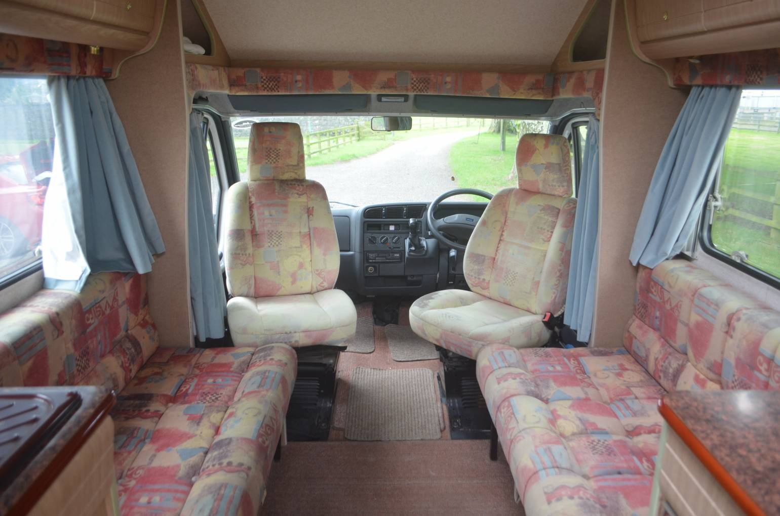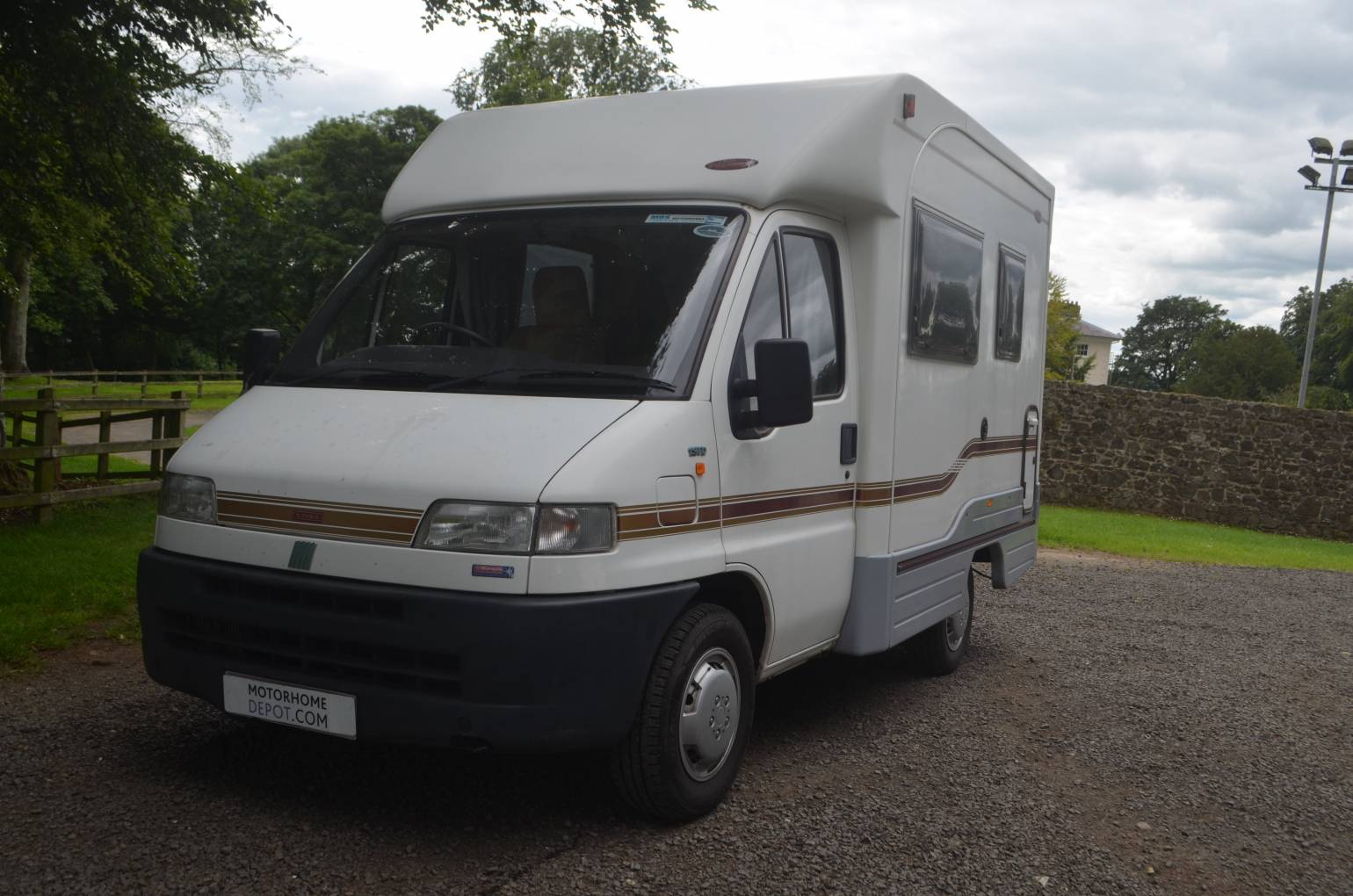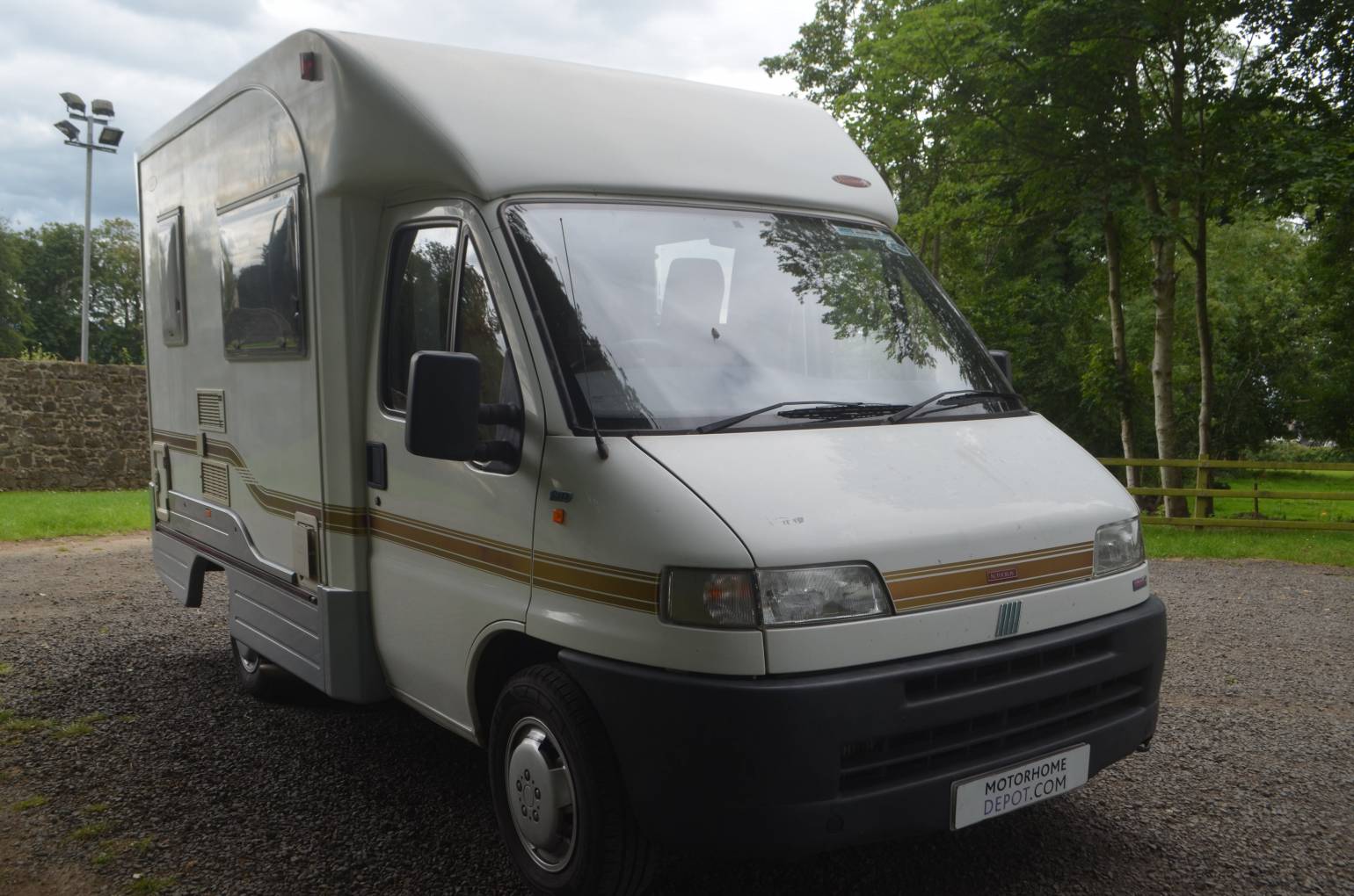 1999 AUTOCRUISE VALENTINE MOTORHOME FOR SALE. Presented in great condition with 39,197 miles travelled. Based on a Fiat Ducatto chassis with a 1.9 engine and 5 speed manual gear box. Service history available. Serviced including Timing belt, water pump and fuel filter replaced in April 2021. This 2 berth motorhome weighs 2800kg and measures approximately 5.2 metres in length. At the rear you have a full sized cooker with 4 burner gas hob, oven, grill and sink. Your compact fridge works 3 ways. End bathroom has a cassette toilet, shower and wash hand basin. The dinette area has a stowaway table for dining and the 2 bench seats will convert into a comfortable double bed. Cab area has 2 swivelling captains chairs. There is plenty of storage located throughout the motorhome and a built in wardrobe available.