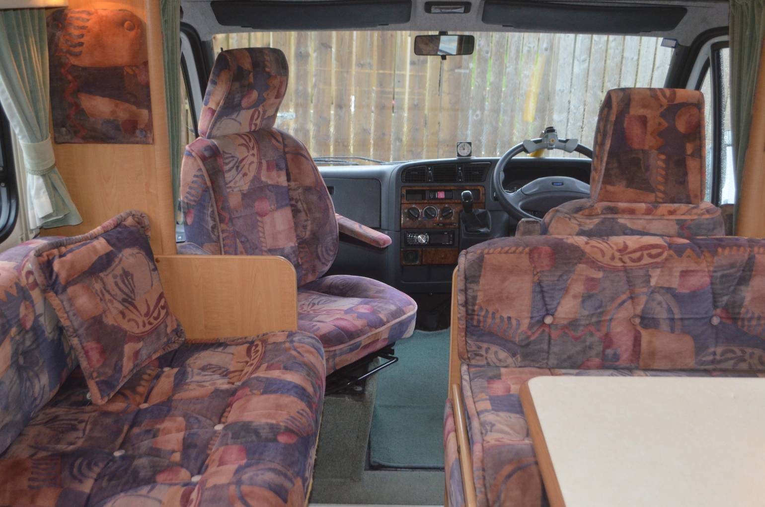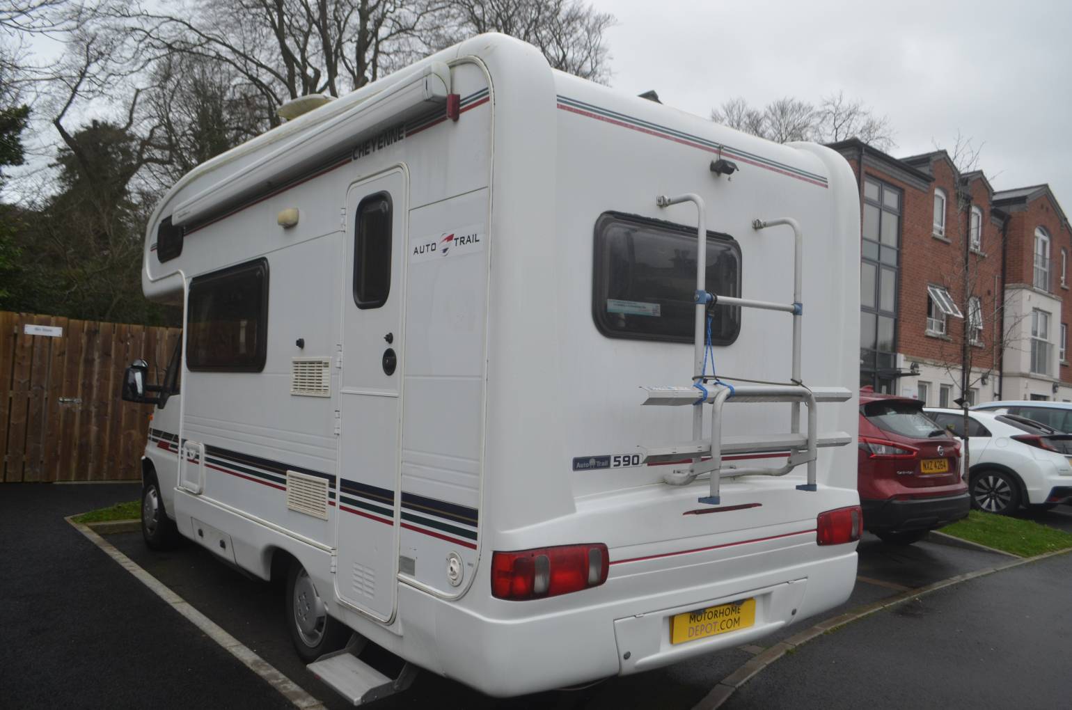 1999 AUTOTRAIL CHEYENNE 590 FOR SALE. Presented in great condition. Based on a Fiat Chassis with a 2.8 td engine and 5 speed manual transmission. Timing belt replaced at 46,000 miles. 56991 miles and Mot until September 2020. Weight 3500kg, length approximately 5.94 metres and 2.2 metres in width. 4 travelling seat belts. There is a reverse camera, radio, power assisted steering and a swivel seat in the cab area. In the centre there is a large bench seat and a dinette area for four people. The seating area converts into a large double bed with another double above the cab. The washroom includes a cassette toilet, wash hand basin with shower head and storage lockers. Kitchen area is equipped with a full sized cooker, 4 burner gas hob, grill, oven, sink and 3 way fridge freezer. Habitation area has a good sized wardrobe and plenty of storage compartments. Extras fitted include an awning and a bike rack.