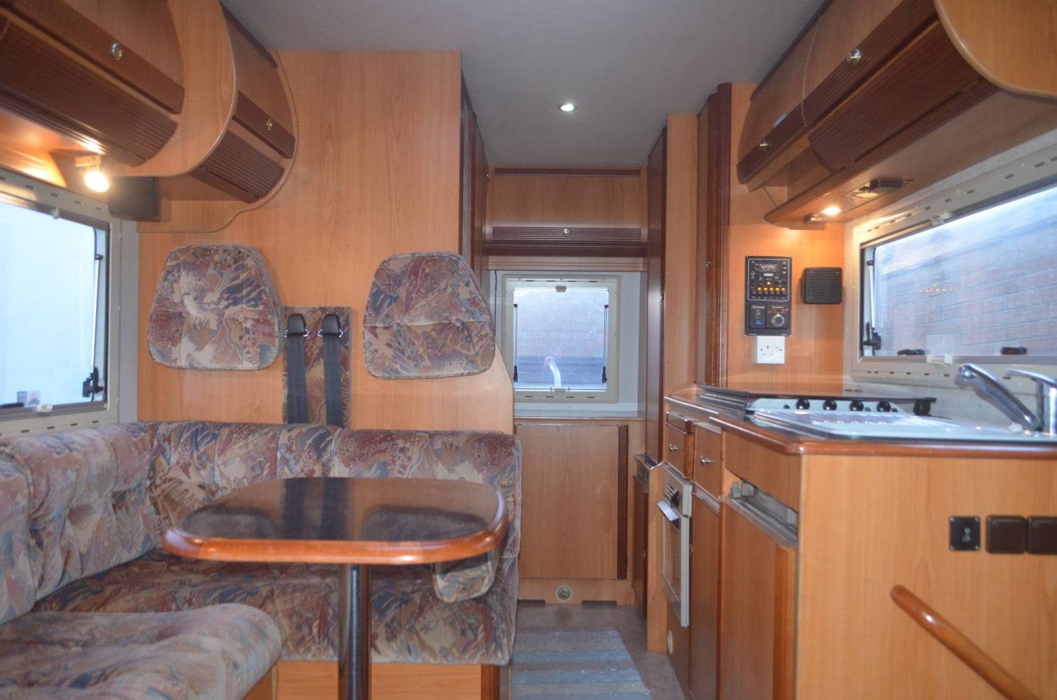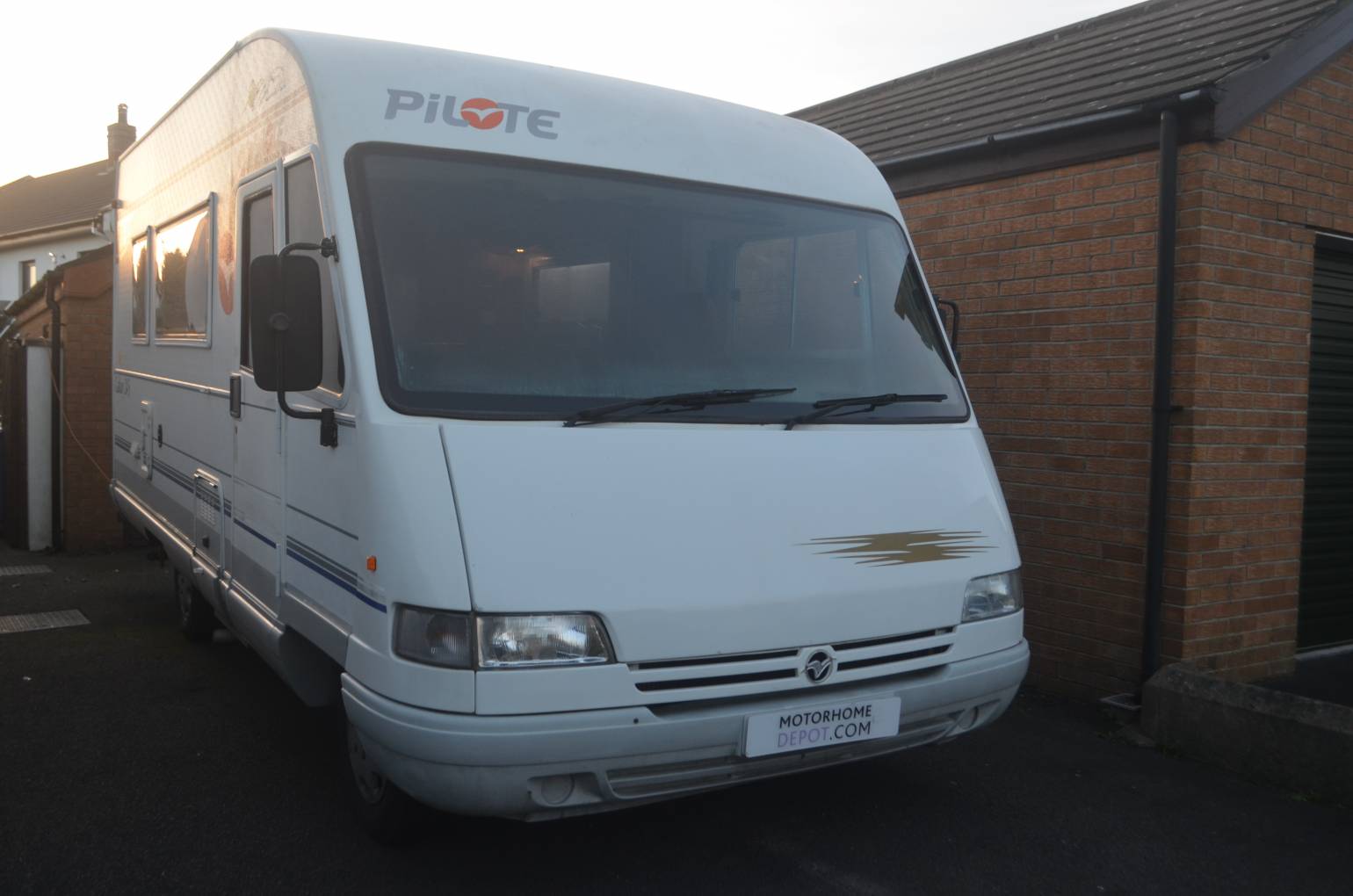 1999 PILOTE GALAXY 24S FOR SALE. Based on a Peugeot Boxer chassis 2.5td engine and 5 speed manual transmission. Presented in great condition with 65090 miles. This A class model has 4 travelling seat belts and will sleep 4 people comfortably. Weight is 3200kg, measuring approximately 6.2 metres in length and 2.3 metres in width. The cab area has 2 swivelling captains chairs, radio, electric windows, power assisted steering and screens for the windows. There is a large double bed above the cab and another double can be made up from the dinning area. Your kitchen is central with a gas hob, separate oven, 3 way fridge and a sink. Washroom is fully equipped with shower, wash hand basin and cassette toilet. There is plenty of storage inside and in the outside lockers. Extras fitted include 2 leisure batteries, tow bar, bike rack, reverse camera and wind out awning.