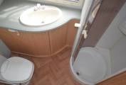 End bathroom is spacious with a separate shower, cassette toilet and sink. Plenty of storage available throughout the habitation area.