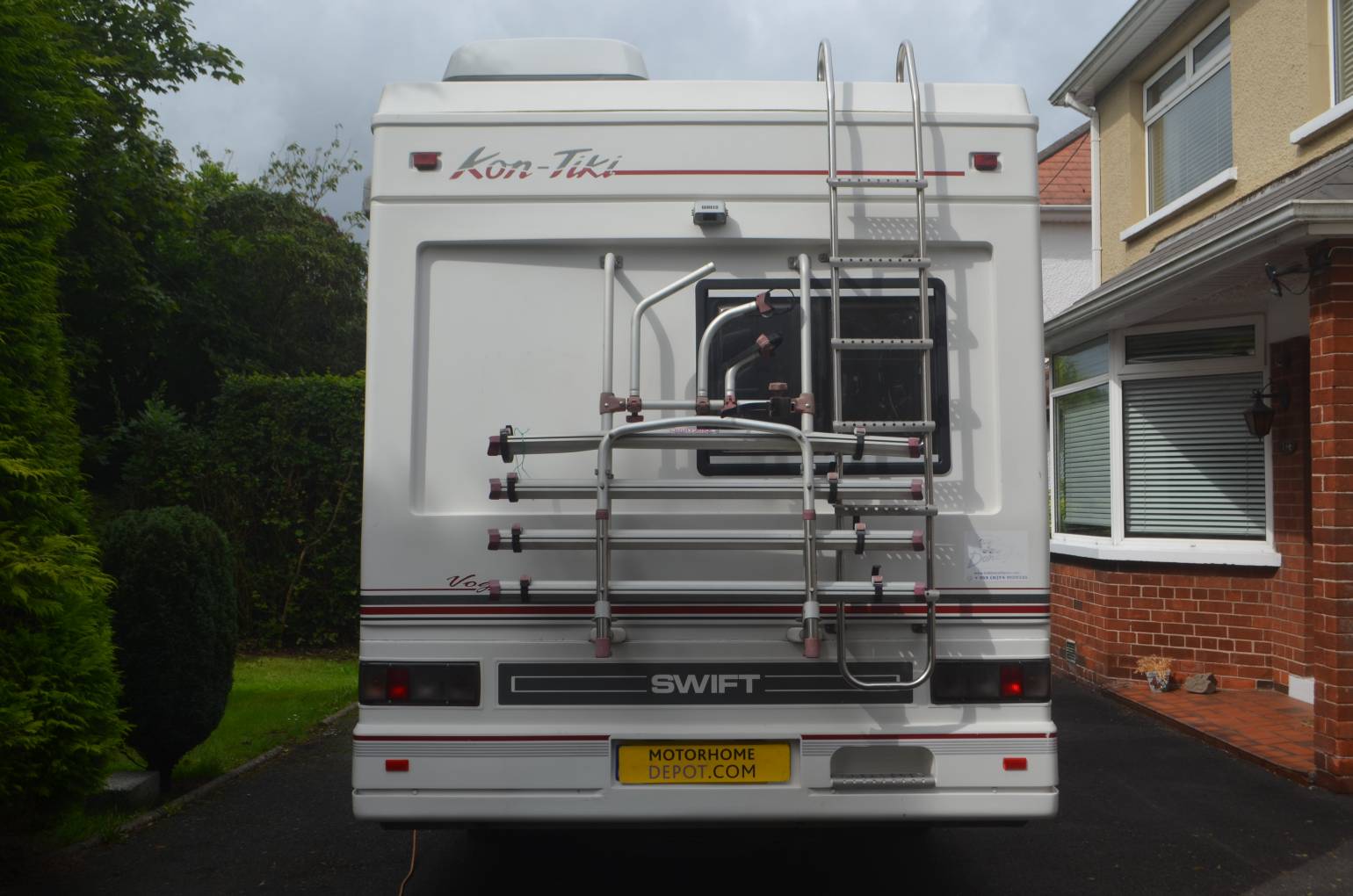 Additional items fitted to the motorhome include an Omnistor awning, 4 bike rack, T.v, rear ladder, top box, reverse camera and 4 new tyres.