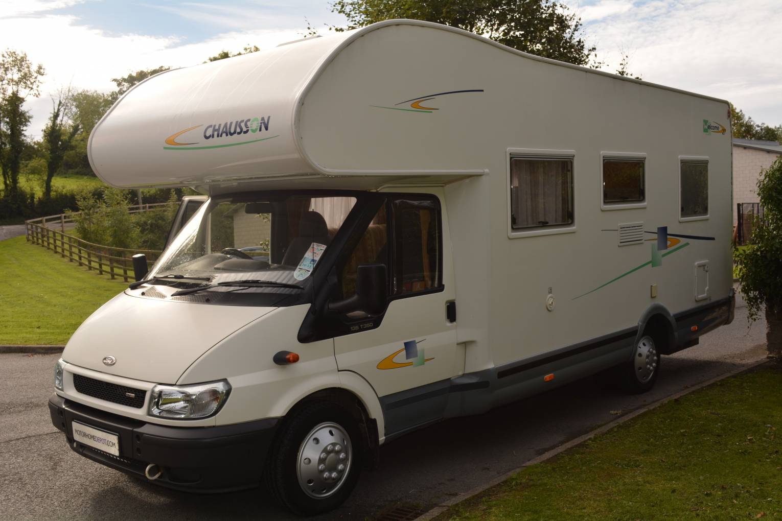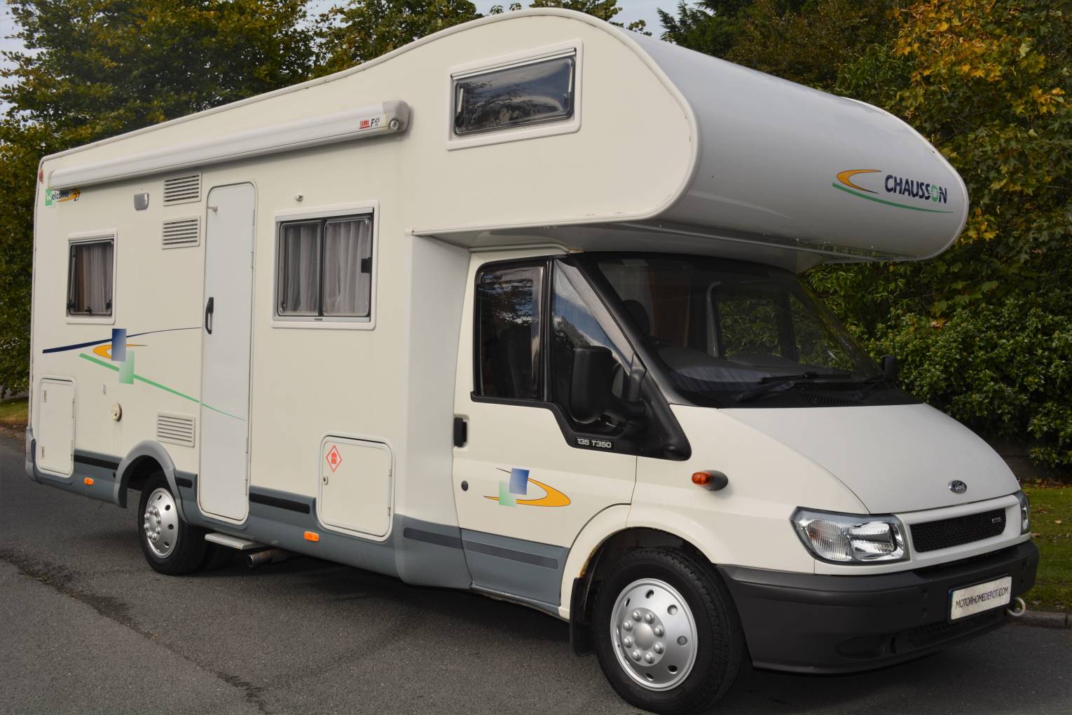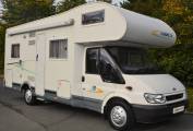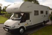 2005 CHAUSSON WELCOME 27 6 BERTH MOTORHOME FOR SALE. Ford based chassis with a max weight of 3850kg and an overall length of 7 metres. The living accommodation consists of a rear french bed with storage beneath, corner washroom with separate shower, mid ship kitchen area with full fridge freezer, oven, grill, hob and sink, spacious lounge area with twin swivel chairs, 2 additional seat belts and transforms into sleeping places for 2 persons. An over cab bed sleeps 2 persons easily. Other features include awning and bike rack. Sale will include full UK mot, habitation inspection with gas certification, valet and 1 years warranty. Please call for further details. PLEASE NOTE NO VRT REQUIRED ON THIS MOTORHOME.