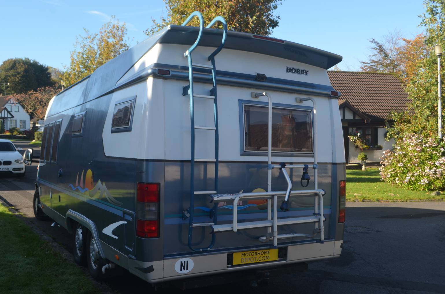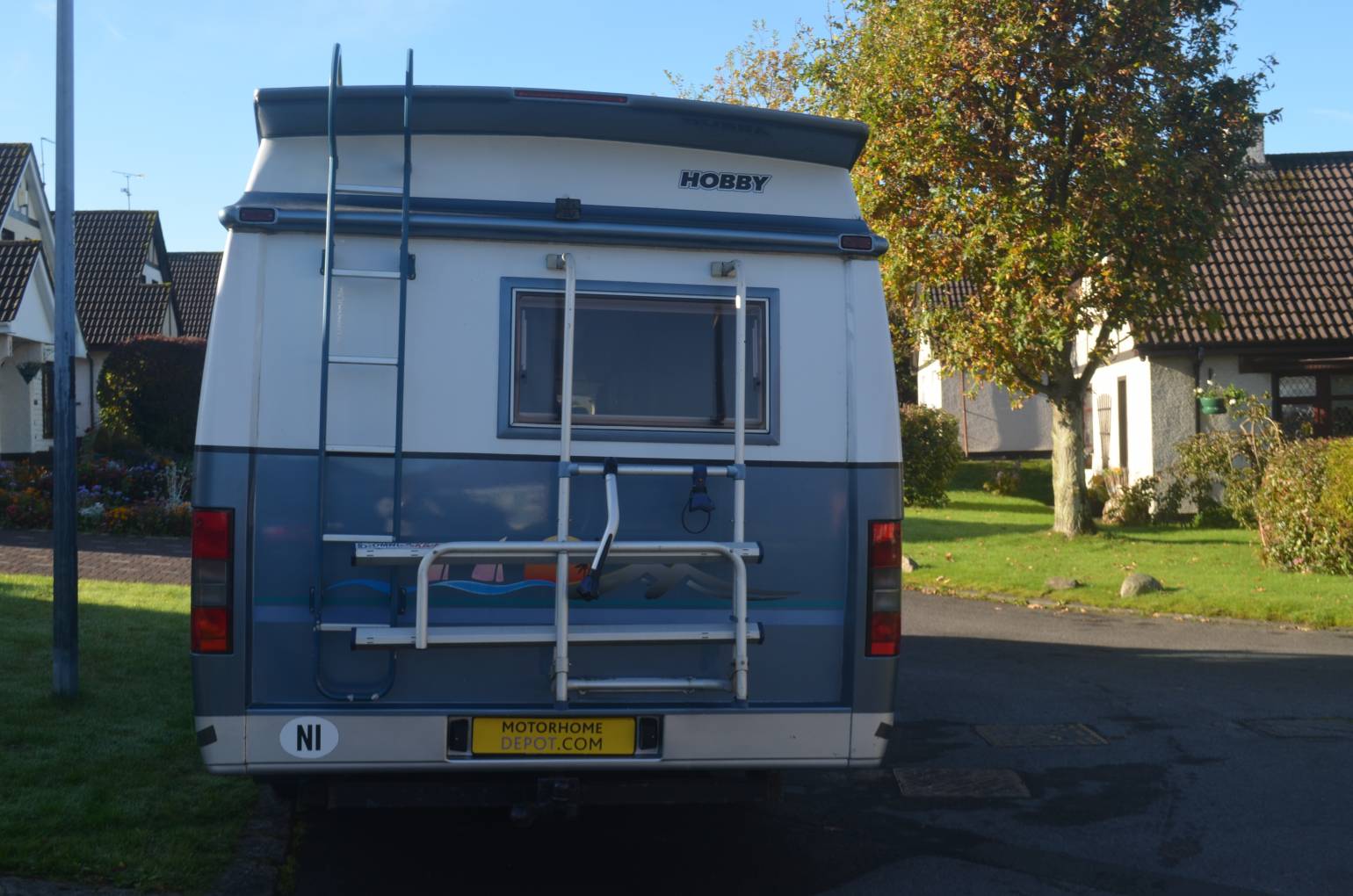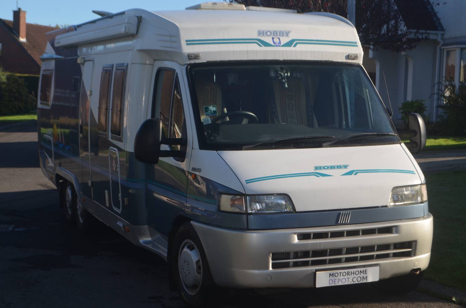 2000 Hobby 750 FOR SALE. Presented in great condition throughout. This Tag axle motorhome is based on 2.8 fiat chassis with 5 speed manual gear box. Mileage at present is 56520. MOT until 8/2019. Weighing 4500kg and is 7,9 metres in length. Sleeping places for 4 people with 3 travelling seatbelts. The cab area has height adjustable swivelling captains chairs, radio/cd player, cab air con and electric windows. The front dinette area is very spacious and bright with a long side bench seat that converts into a double bed. Kitchen is equipped with a 3 gas burner hob, sink,drainer and fridge freezer. At the rear you have a corner bathroom and shower with a separate corner sink and large mirror. This model features a fixed french bed with storage and a wardrobe situated throughout the cab area. Extras fitted include a large locker, tow bar, ladder, solar panel and an awning.