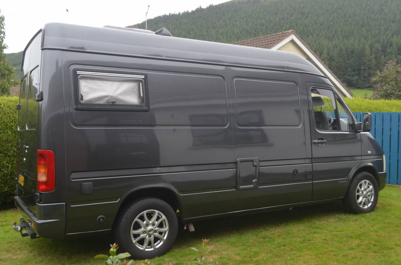 2001 VOLKSWAGEN LT 35 PANEL VAN CONVERSION FOR SALE. This MWB conversion is presented in good condition. The interior is roomy and comfortable and converted to a great standard. MOT until September 2019. Based on a VW chassis with a five speed manual gearbox and 2.5 engine. Maximum weight is 3500kg and has 4 travelling seat belts. The cab area has adjustable swivel seats, reversing camera and radio. There is a Thetford electric flush toilet and shower in the washroom and your dinning area can accommodate up to 4 people. The kitchen has a 2 burner hob with sink, Waeco fridge and plenty of storage for your essentials. At the rear there is a double bed above the garage with storage below. Attached to the roof you have an optional bed stowed away. This camper has thermal window blinds, fly screens and is carpeted with Led lights in the habitation area. Fully serviced, all filters have been changed, timing belt kit and water pump replaced. Gas certificate available. Extras include a tow bar, 240v invertor, LPG tank fitted, fresh water tank, waste water tank underneath, outdoor shower point, large solar panel and 2 leisure batteries.