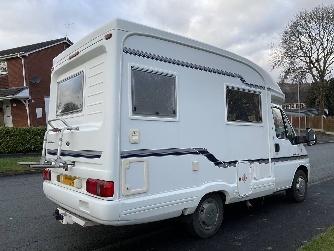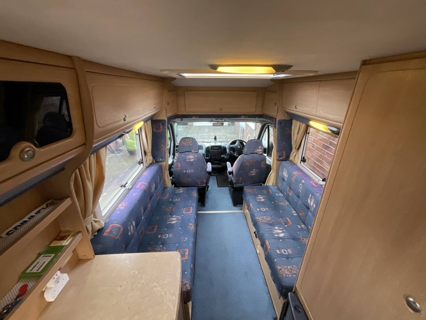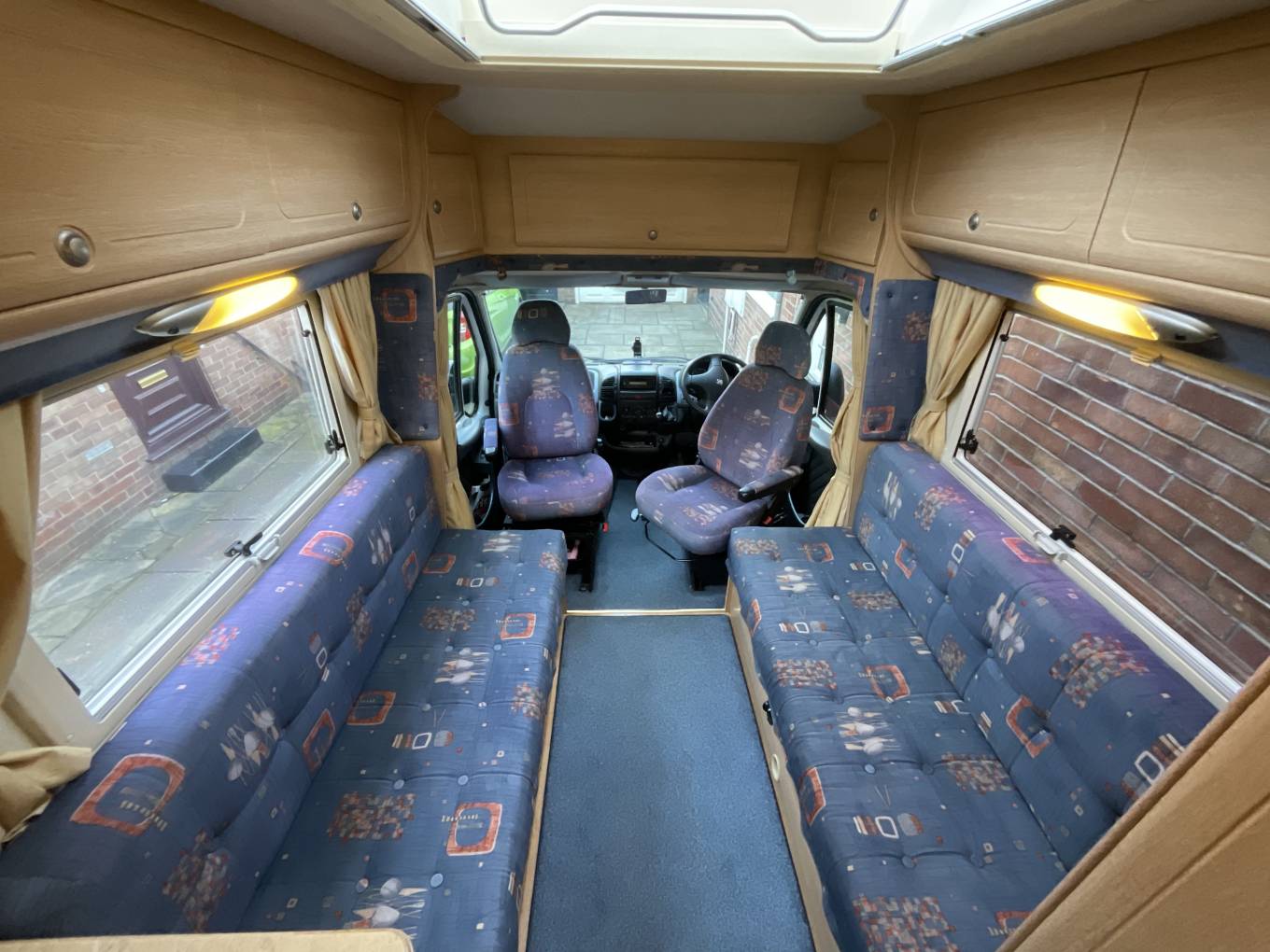 Motorhome Depot Stoke on Trent is delighted to have on offer a 2002 Auto-Sleepers Nuevo for sale. This compact 2 berth motorhome is based on the popular Peugeot chassis and has the 2 litre diesel engine with a 5 speed manual gearbox and boasts excellent service history. Starting at the rear of this lovely motorhome we have a very well equipped kitchen that includes a 4 burner gas hob, grill, oven, hand wash basin and a 3 way fridge. Adjacent to this we have a compact washroom that is comprised of a vanity style hand wash basin, cassette toilet and separate shower controls. The Nuevo boasts great storage options throughout with lots of overhead, under bench and wardrobe spaces. The side benches are comfortable and will easily pull together to create a large double bed for the sleeping arrangements. The drivers and passengers seats will also swivel to give you and any guests additional seating options if required. Please call our friendly sales staff to assist further. MOTORHOME LOCATED WITHIN STOKE ON TRENT.