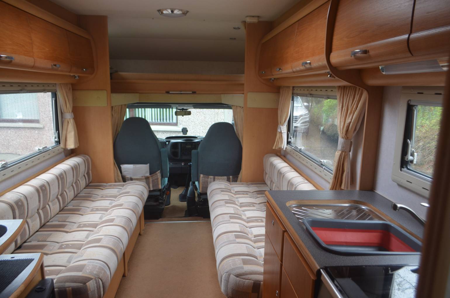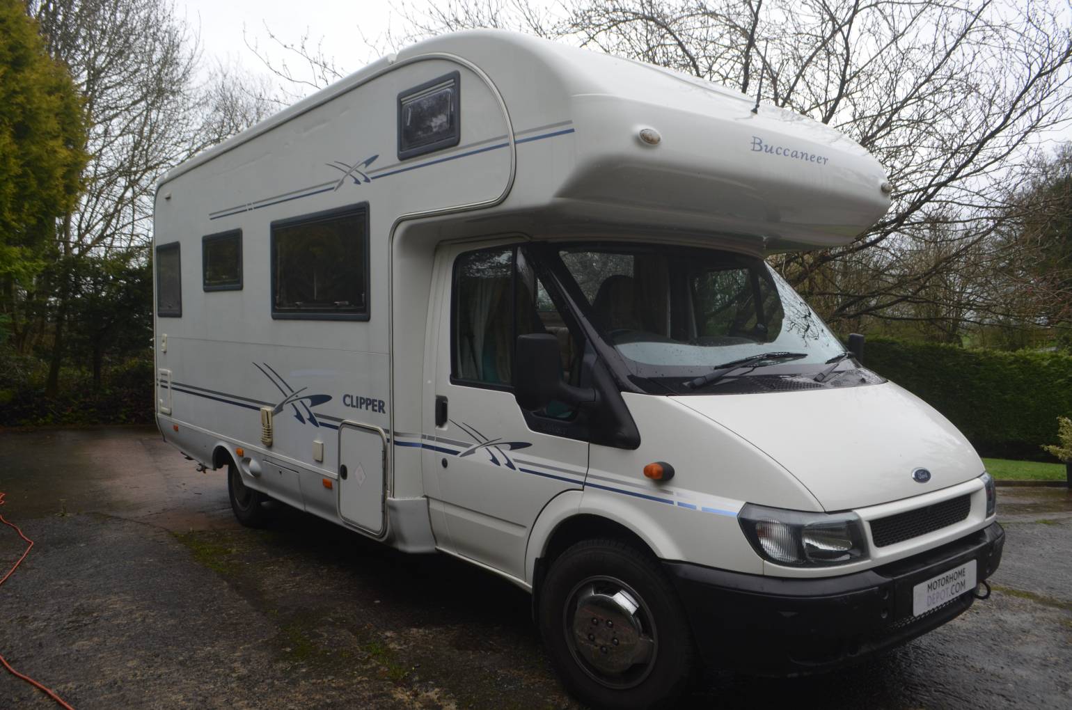2002 BUCCANEER CLIPPER FOR SALE. THIS MOTORHOME IS SHOWING 50901 MILES AT PRESENT. BASED ON A 2.4 LITRE FORD TRANSIT CHASSIS AND IS PRESENTED IN GREAT CONDITION THROUGHOUT. SERVICED MARCH 2021. VRT HAS BEEN PAID ON THIS MOTORHOME. ACCOMMODATING UP TO FOUR PEOPLE WITH TWO TRAVELLING SEAT BELTS. MAXIMUM WEIGHT IS 3500KG, MEASURING 6.83 METRES APPROXIMATELY IN LENGTH AND 2.17 METRES IN WIDTH. THE CAB AREA COMES EQUIPPED WITH A CAPTAINS SWIVELLING SEAT, RADIO, CENTRAL LOCKING AND ELECTRIC WINDOWS. ABOVE THE CAB THERE IS A LARGE DOUBLE BED WITH EITHER TWO SINGLES OR ANOTHER DOUBLE BED THAT IS EASILY CONVERTED IN YOUR DINING AREA. THE DINNING AREA IS VERY SPACIOUS AND BRIGHT. YOUR KITCHEN AREA COMES EQUIPPED WITH A FULL SIZE COOKER, GRILL, SINK, DRAINER AND DOMETIC 3 WAY FRIDGE. WASHROOM IS AT THE REAR OF THE MOTORHOME AND HAS A THETFORD TOILET, WASH HAND BASIN AND SEPARATE SHOWER CUBICLE. GREAT STORAGE SURROUNDING THE CAB AREA WITH TWO SPACIOUS LOCKERS OUTSIDE. EXTRAS FITTED TO THE MOTORHOME INCLUDE A TOW BAR, REAR PARKING SENSORS, 2 NEW TYRES AND AIR SUSPENSION.