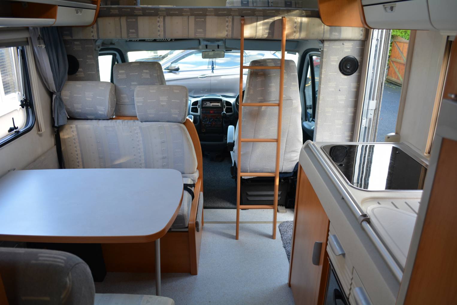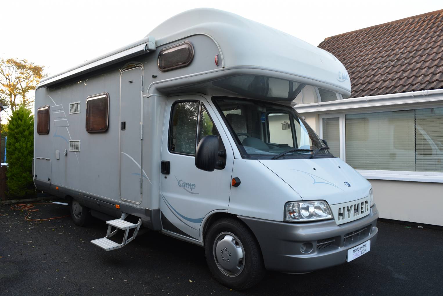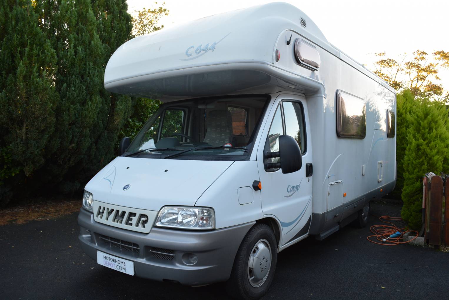 2002 HYMER C644 MOTORHOME FOR SALE. Presented in great condition. The Hymer c644 is a popular family layout with sleeping places for 6 people and 6 travelling seat belts. Miles travelled 36,278. Based on a Fiat chassis with a 2.8Jtd engine and 6 speed manual gear box. Weight 3900kg, C1 licence required and approximately 6.99 metres in length. Layout consists of a large double bed above the cab, centre dinette converts into a double bed and your spacious U shaped lounge at the rear converts into another comfortable double. Central kitchen has a 3 gas burner, grill, oven, sink with mixer tap and a 3 way fridge freezer. Your washroom is compact and has a cassette toilet, wash hand basin and a shower. You have plenty of storage located throughout the habitation area. Extras fitted include a Fiamma awning and a bicycle rack.