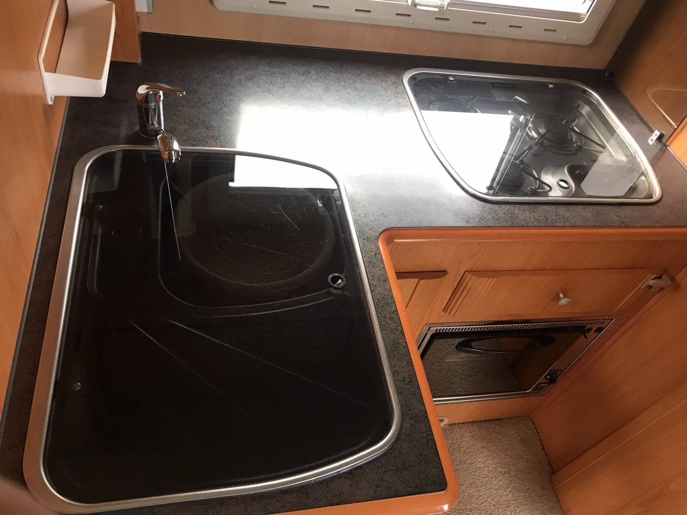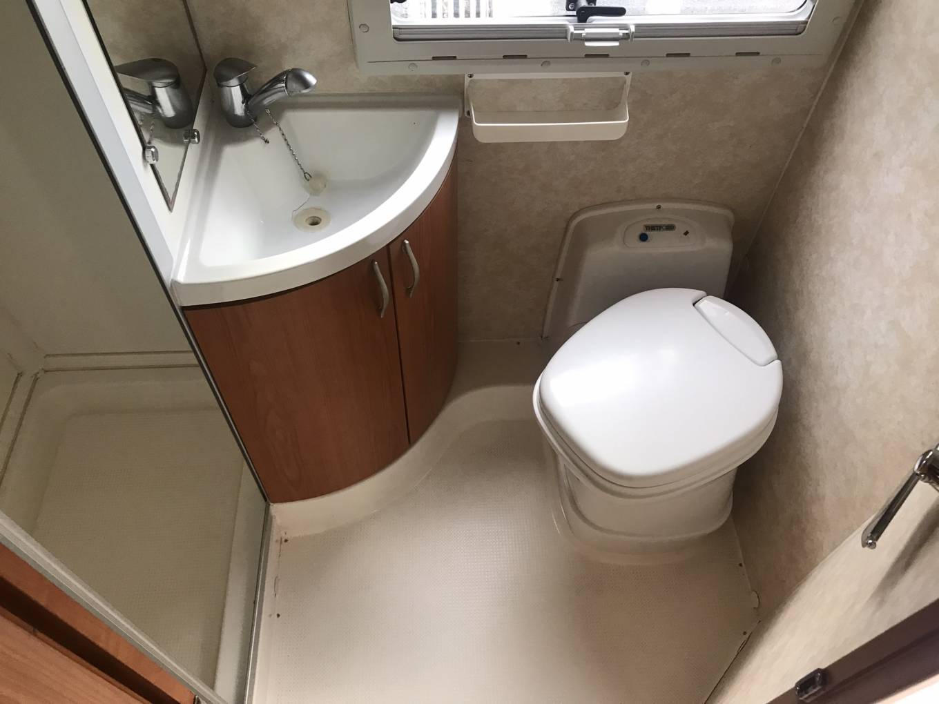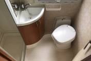 The washrooms takes up the rear of the vehicle and benefits from a shower, basin and toilet. Toilet has SOG fitted which means that once you open the flap to use the toilet this activates the SOG fan which pulls clean air into the toilet pan, through the cassette and out to the sog filter.
