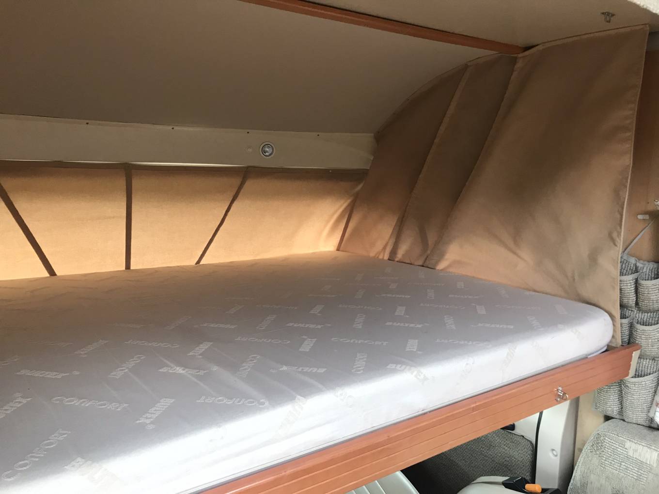 Front overcab dropdown bed - 4'6" x 6'3" - which has easy access from the bench seat, meaning no ladder is required.
