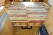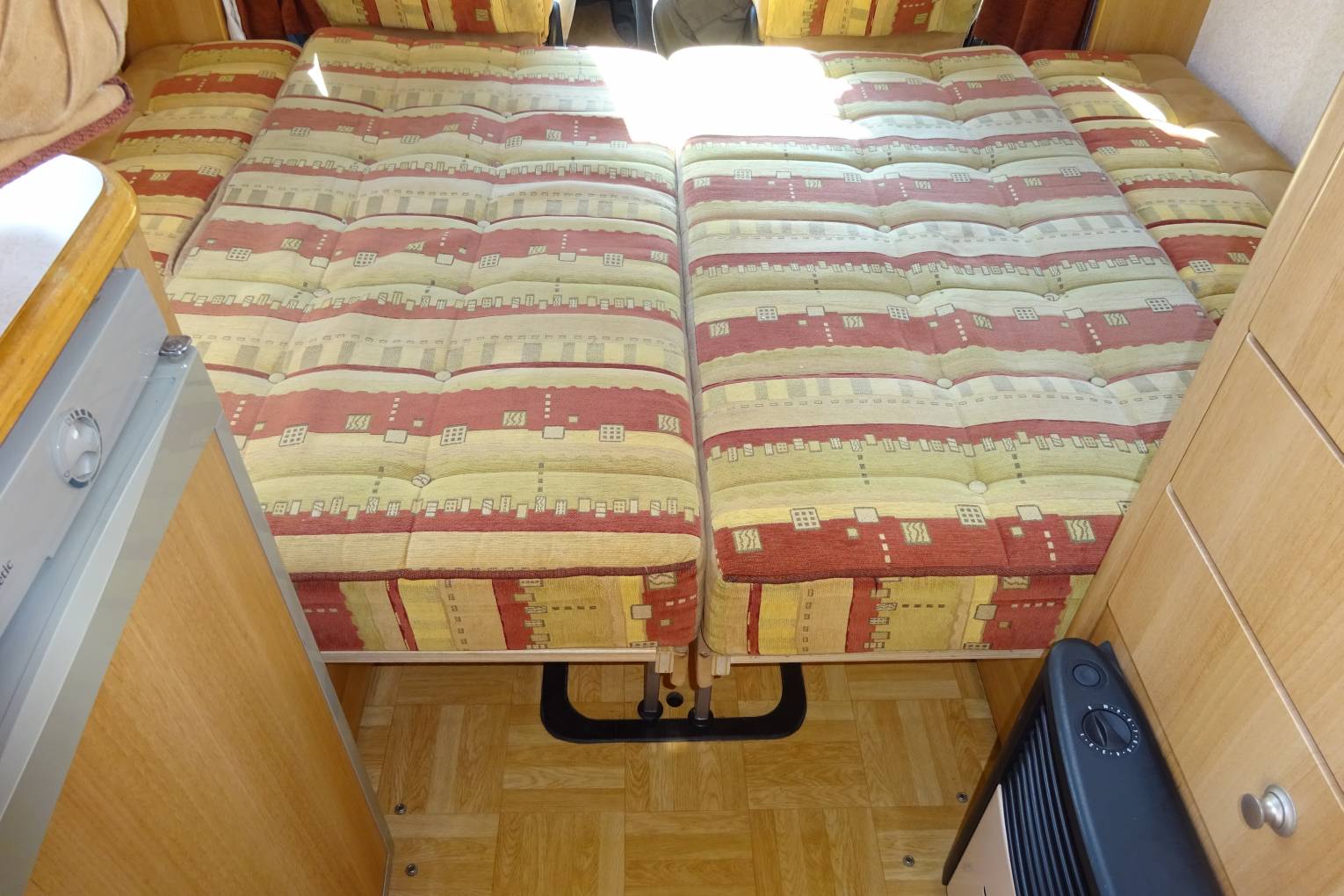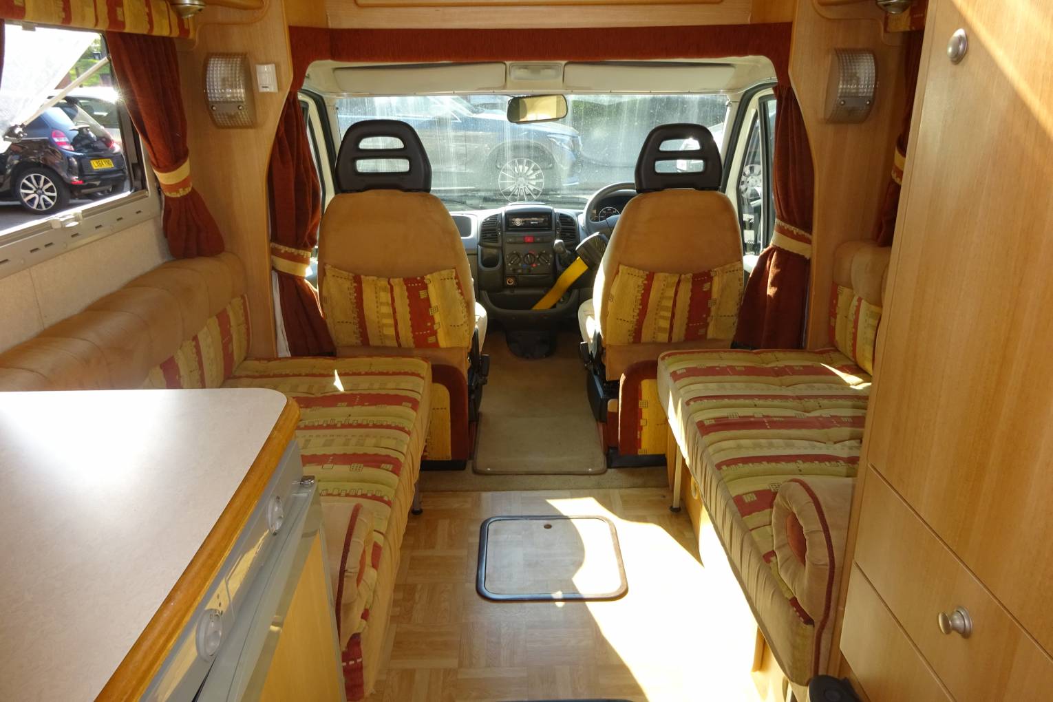 The layout is end kitchen, bench sofas that can be made into a large comfortable double or two singles using the movable seat bolsters and reversing the cab seats. All in all, a great little British built motorhome in exceptional condition.