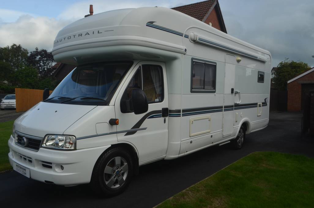 2004 AUTO-TRAIL DAKOTA FOR SALE. Luxury 4 berth motorhome with 2 travelling seat belts. Presented in excellent condition. 38,500 miles travelled and has MOT until April 2022. Based on a Fiat Ducato chassis with a 2.8L engine and 6 speed manual transmission. Weight 3850kg and C1 is required to drive the motorhome. The french bed at the rear is comfortable and has storage space underneath. Bathroom is spacious with a separate shower, wash hand basin and cassette toilet. Mid ship kitchen is fully equipped with a full sized cooker, 3 way fridge freezer and a sink with mixer taps. Your lounge area also converts easily into another double bed. In the cab you will have a swivelling captains chair, digital radio, power assisted steering, reverse camera and electric windows. Excellent storage in the habitation area for your travel essentials. Additional items fitted to the motorhome include a rear ladder, tow bar, outside bbq and shower point.