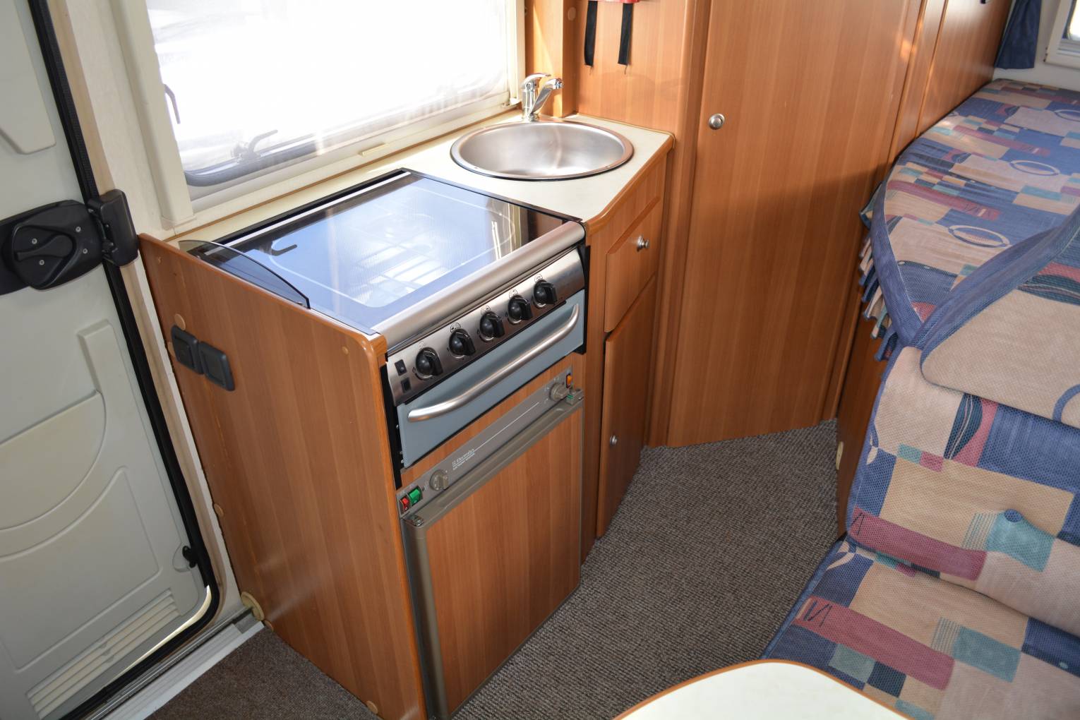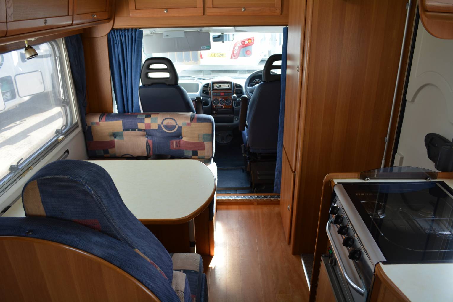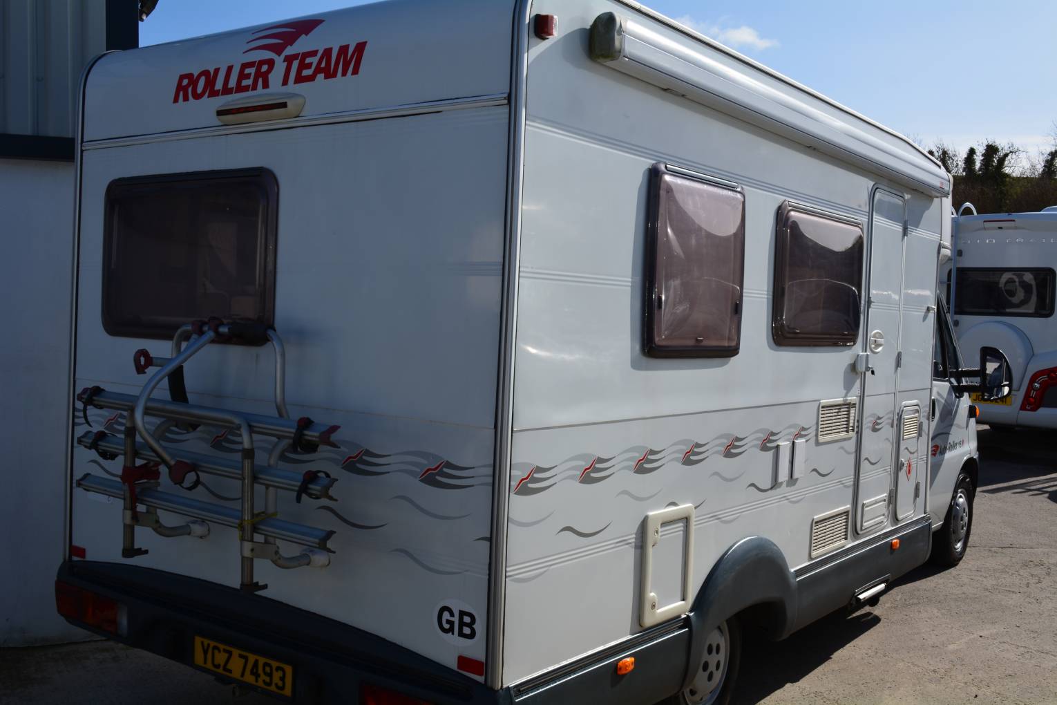2004 Auto Roller 15P 4 Berth Compact Motorhome for sale. This layout features a large fixed corner bed with spacious storage beneath, dinette area with 4 travel seats, kitchen with hob, grill, fridge, sink and hot water and a corner washroom with separate shower facility. Based on a Fiat Ducato 3500kg chassis measuring approx 6.0m in length and includes awning and bike rack. Sale includes full MOT, habitation inspection with gas certificate and 6 months warranty. Finance available subject to status.