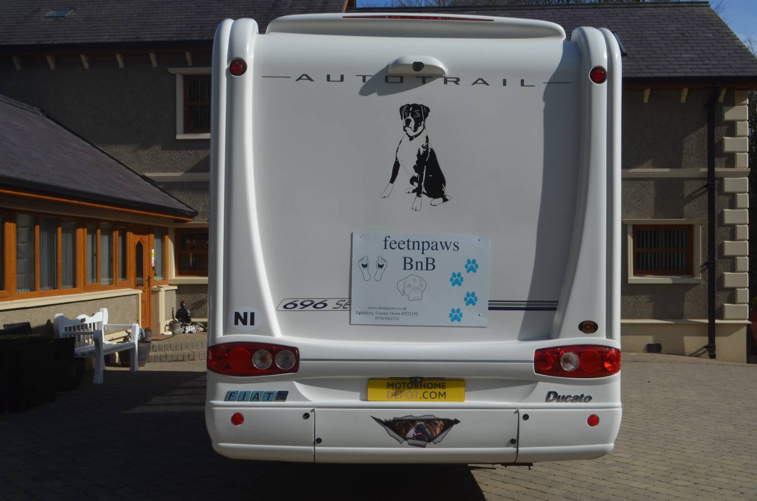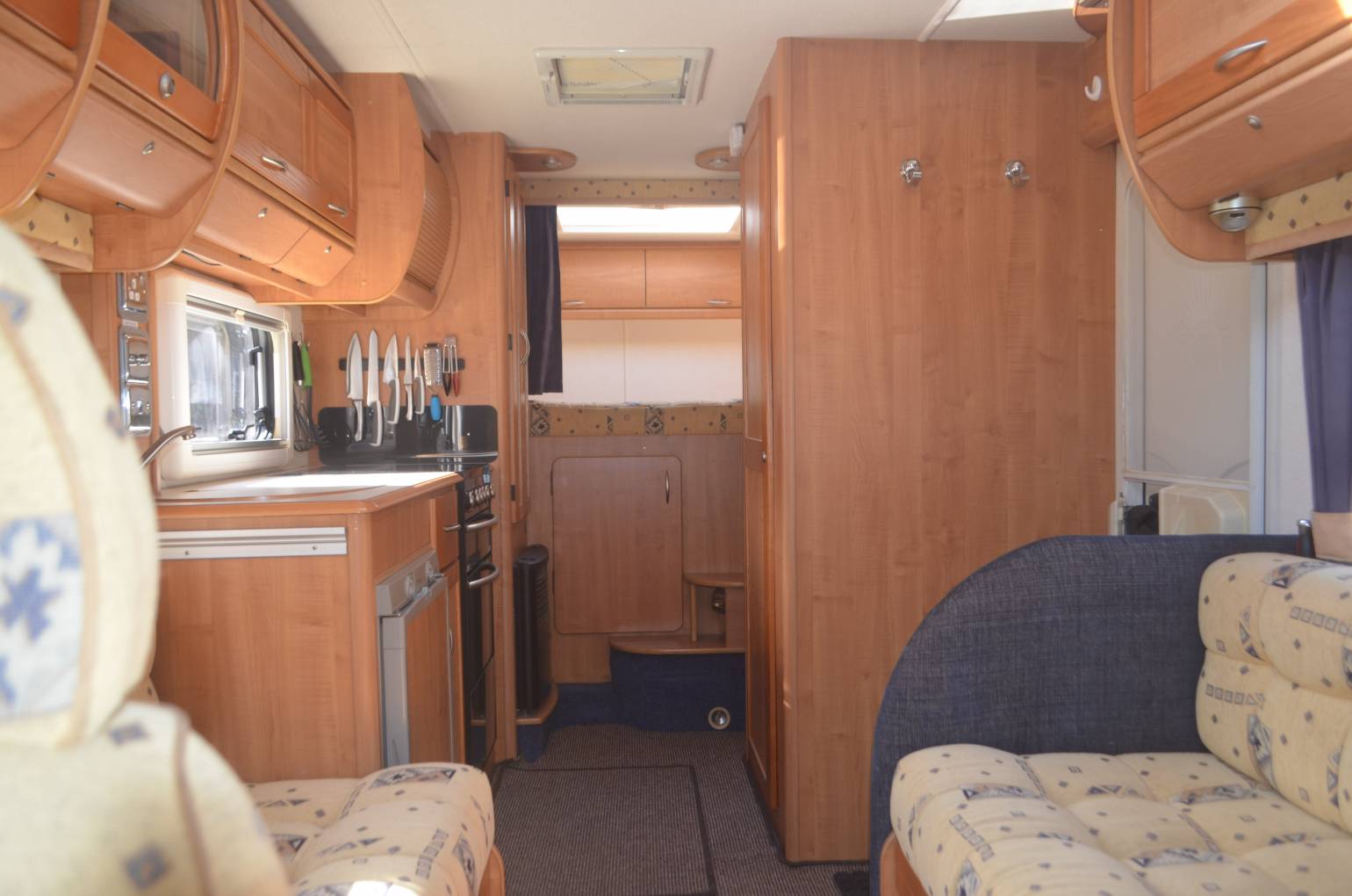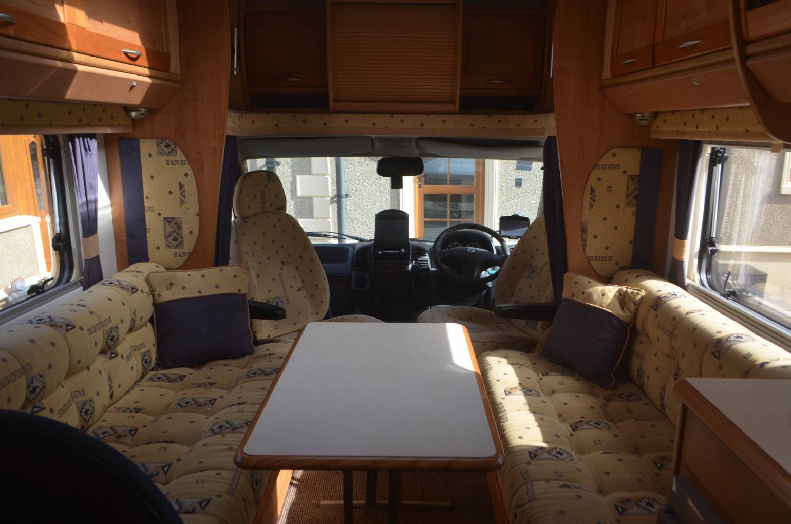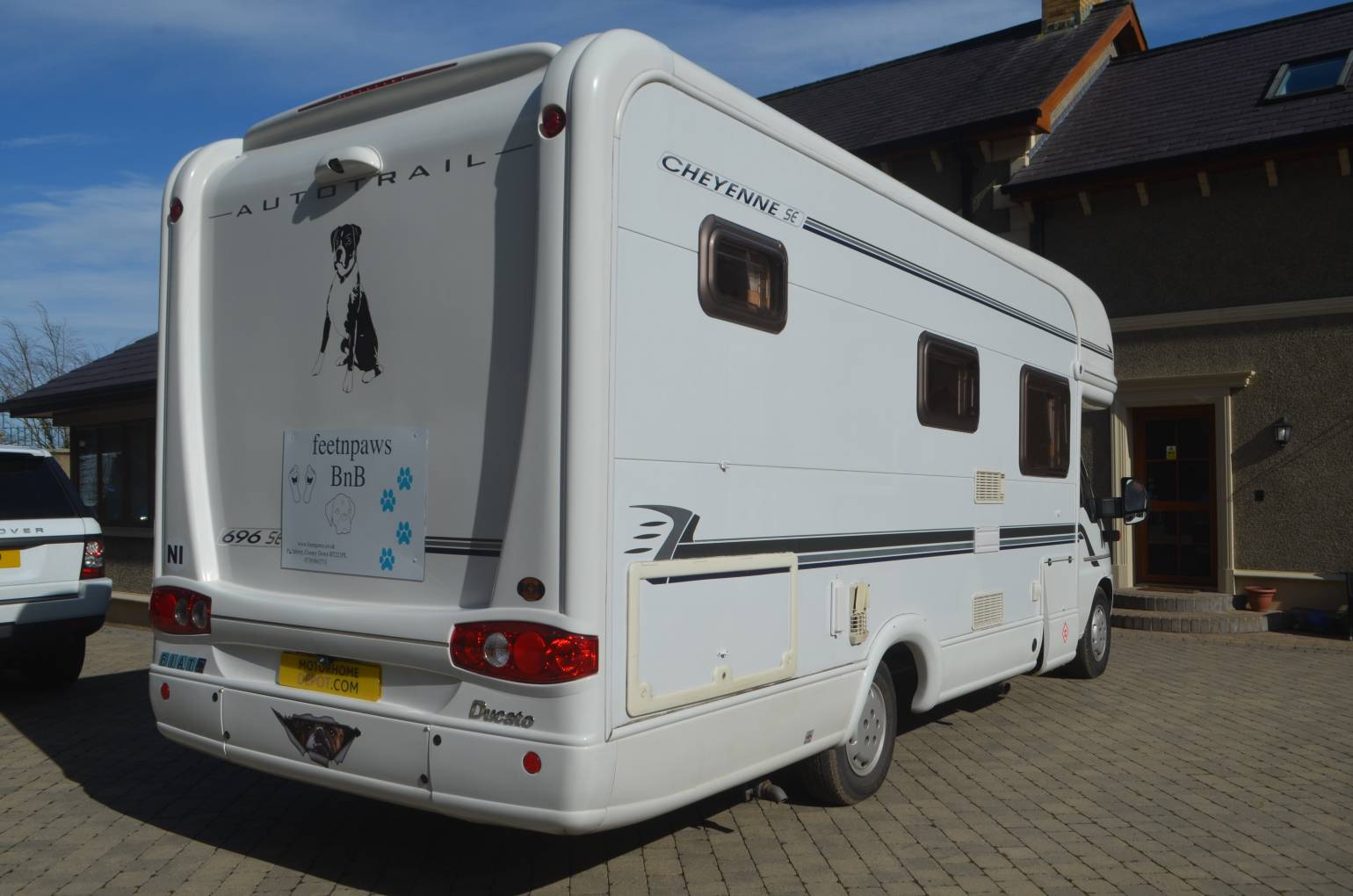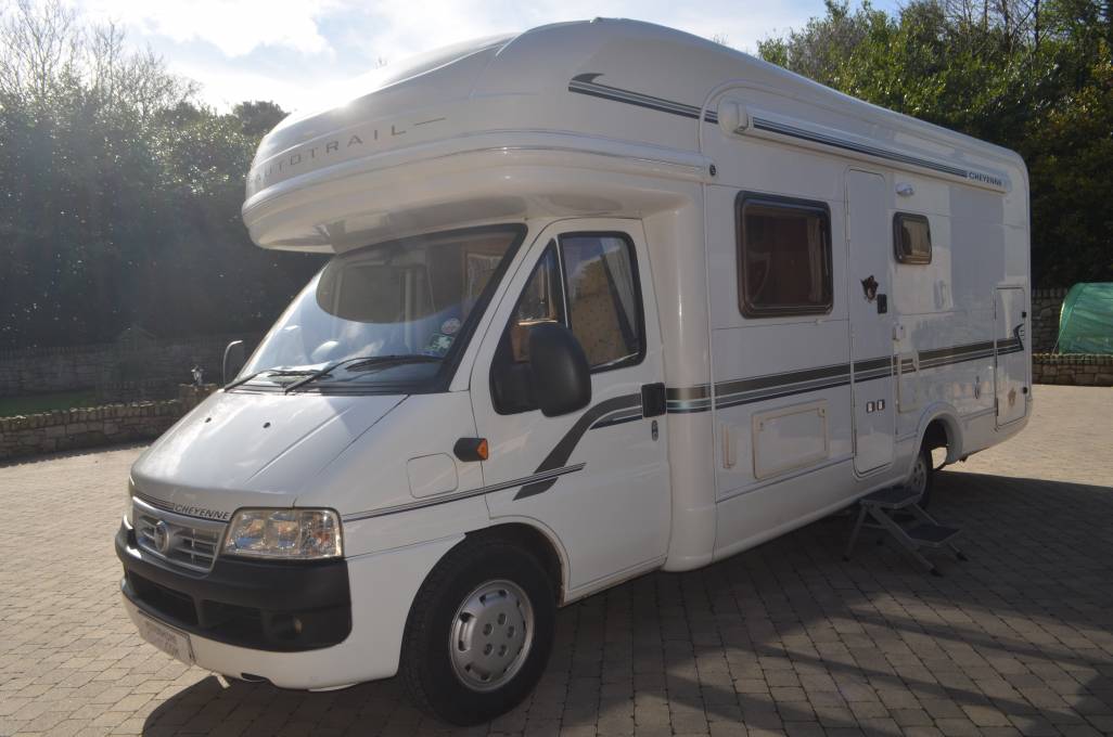 2004 AUTO-TRAIL CHEYENNE 696 SE FOR SALE. This 4 berth motorhome is in excellent condition and has 2 travelling seat belts. Based on the 2.8L JTD Fiat Ducato Maxi chassis, Length is 7.26m, Width is 2.31m, Height is 3.05m and it has a max weight of 3850kg. You will need C1 on your licence to drive. The front cab area has 2 swivelling captains chairs, Radio/CD player, central locking, electric windows, Sat nav and a reverse camera. Mileage at present is 56,000. MOT'd until October 2021. This motorhome is very spacious with a large fixed double bed at the rear which is set above a huge garage. The washroom has a wash hand basin, cassette toilet and separate shower cubicle with folding door. Opposite is a large wardrobe which also stores the free standing dining table. The kitchen has a sink, dual fuel hob, grill, oven, 3 way fridge with freezer compartment and a 12v Omnivent fan above. The spacious lounge has 2 long parallel sofa seats and easily converts into another large double bed. There is plenty of storage throughout and other extras include a Tv/dvd player, satelitte system, electric step, external hot and cold shower and BBQ point, Gasit system, Bike Rack, Wind Out Awning, an Inverter, 4 new tyres and electric hook up Lead.