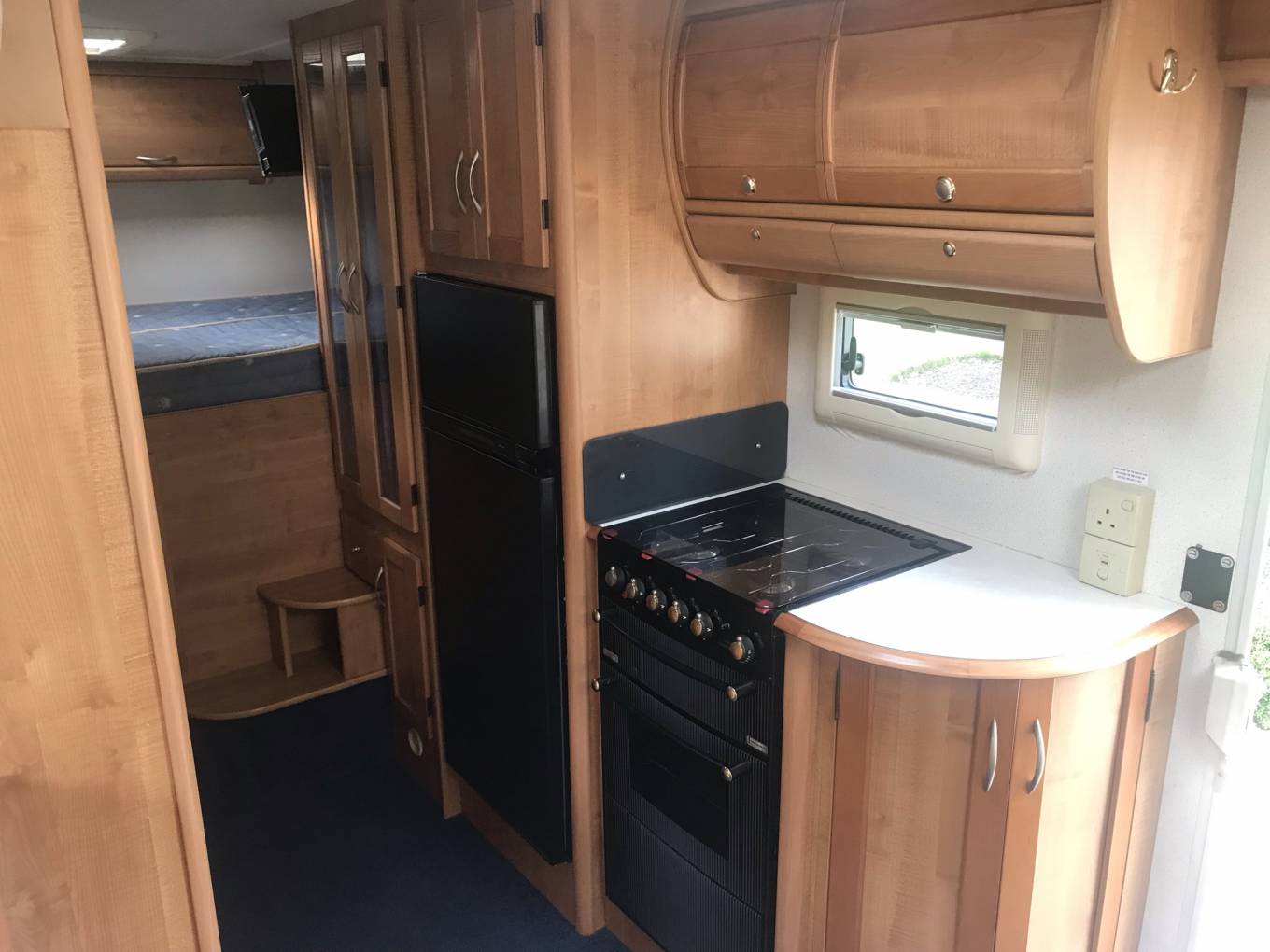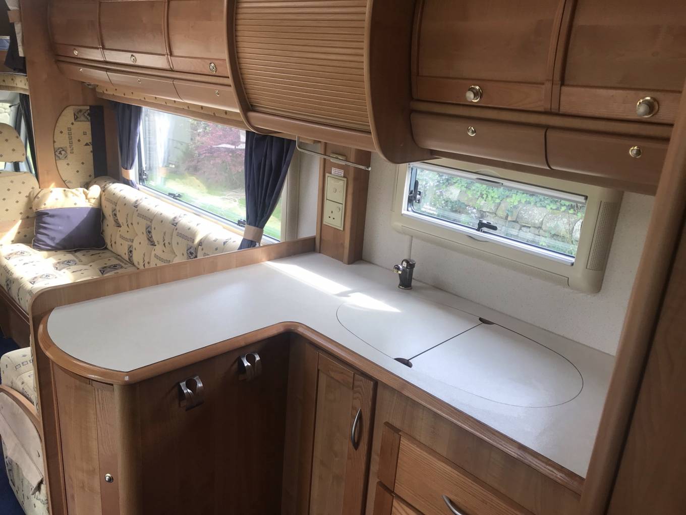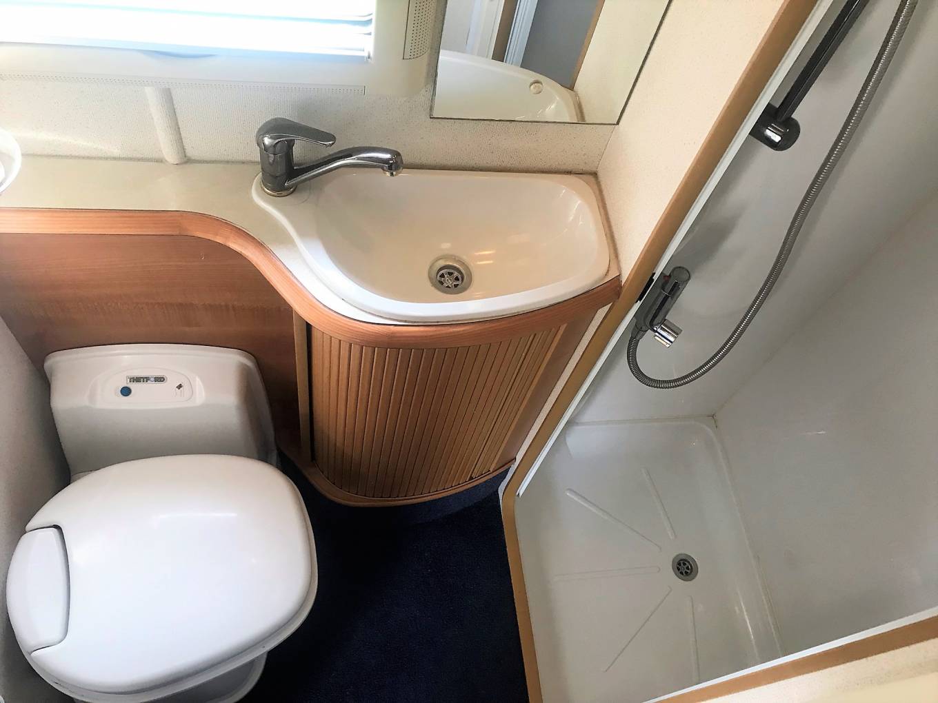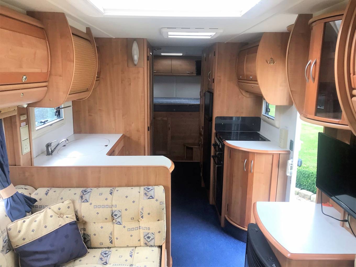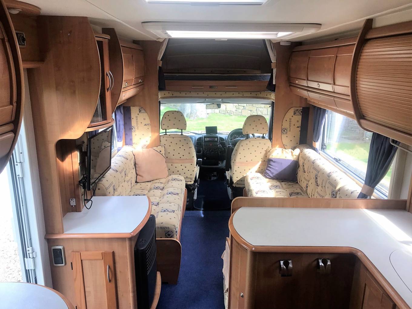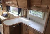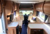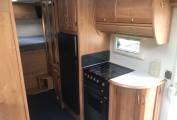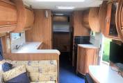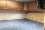 6 berth - with a rear fixed bed, over-cab bed, and a dinette which converts to a large double.
