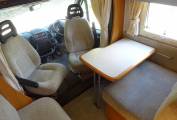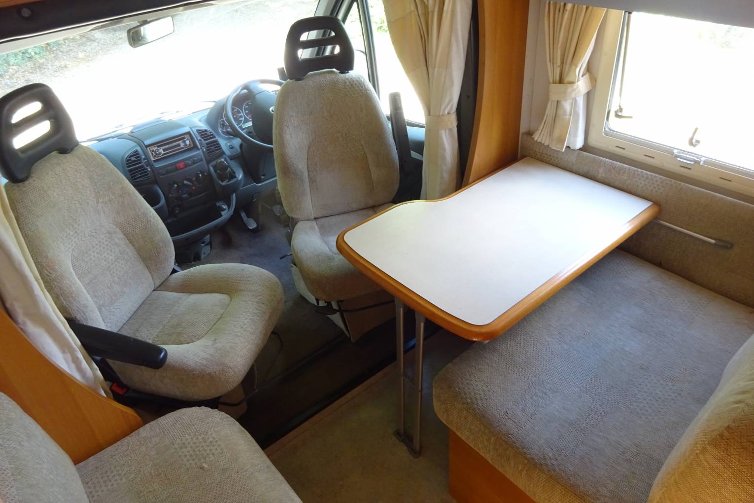 Forward of this we have 2 forward facing belted seats and opposite a double side facing sofa which together with the 2 front seats when swivelled around can make room for six around the table at mealtimes.