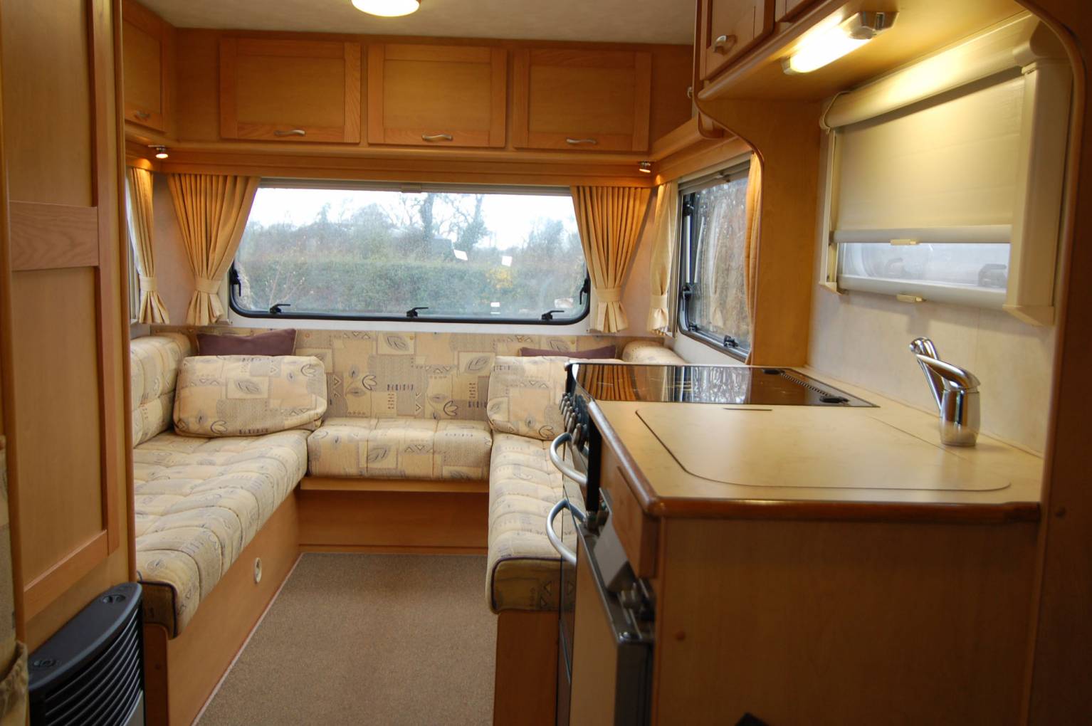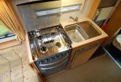The Avantgarde 400 is the sister model to the Elddis Autoquest 400 and has a welcoming rear lounge with plenty of light and air, big enough to put your feet up and quickly makes a double or two single beds. There is good storage under the seats, with an external access hatch. In the midships you will find a good sized wardrobe and very clean and well equipped kitchen with gas hob, grill and oven, three way fridge and popup worksurface. Opposite this is a combined washroom with vanity sink, toilet and shower. For domestic utilities, there are onboard fresh and waste water tanks and dual fuel heating and hot water systems.