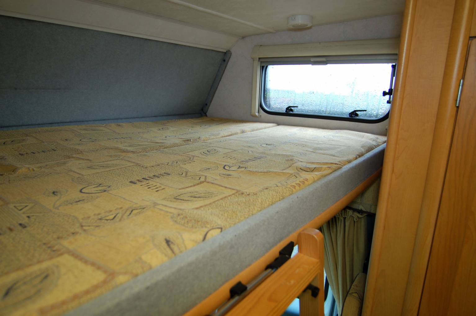 Over the cab is another bed, accessed via ladder and with its own window. The bed base slides forward for easier access into the cab during the daytime.
