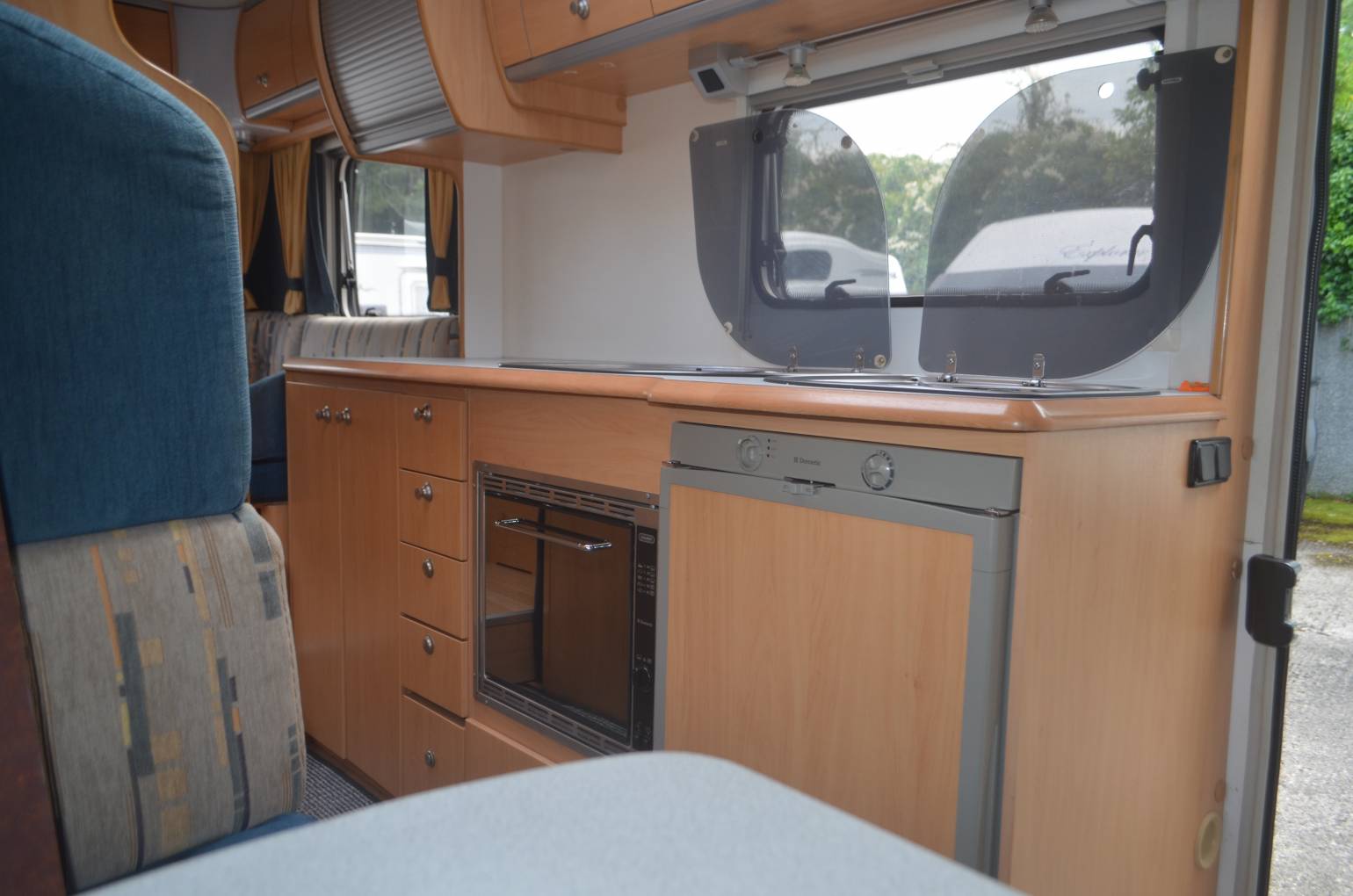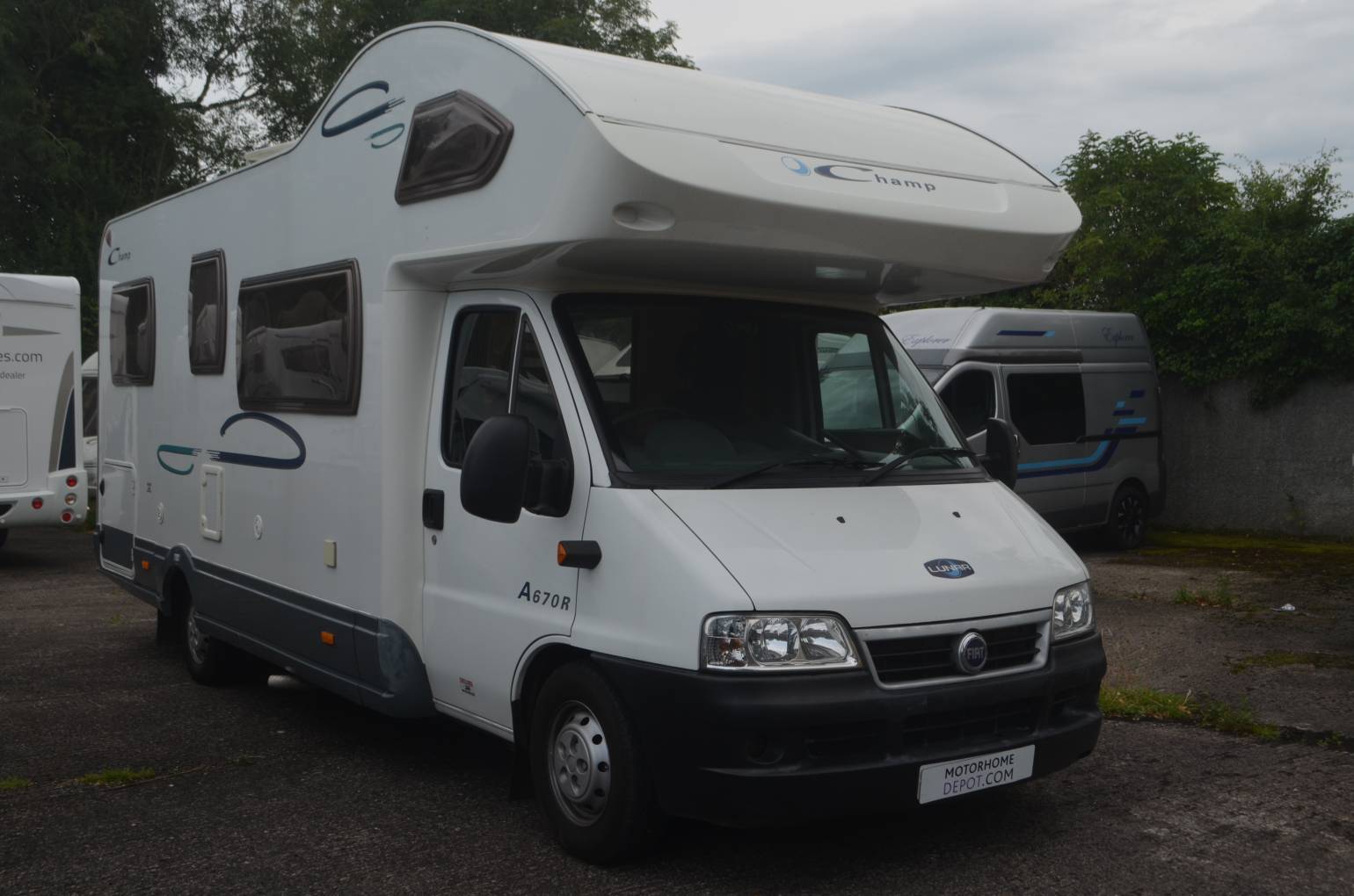 2004 Lunar Champ A670R FOR SALE. Presented in good condition. Based on a Fiat Ducato 2.8 chassis with a max weight of 3500kg. Measuring approximately 6.98 metres in length. Mot March 2020. Mileage 40100. Sleeping places for 6 people and has 4 travelling seatbelts. An ideal family layout with a U shaped lounge offering sleeping places for 2 people, centre dinette will accommodate another 2 people and there is a large double above the cab. Your large washroom has a shower, wash hand basin and cassette toilet. Central kitchen is complete with a 3 burner gas hob, oven, grill, sink and fridge freezer. There is plenty of storage lockers throughout the habitation area. Additional items fitted include a reverse camera, wind out awning and a bike rack.