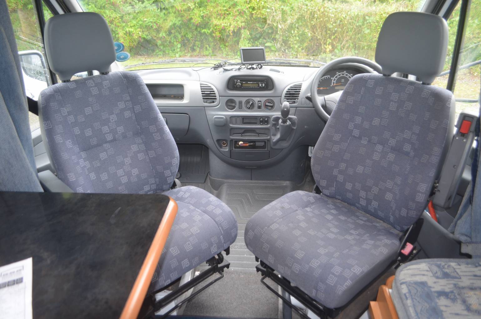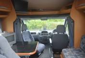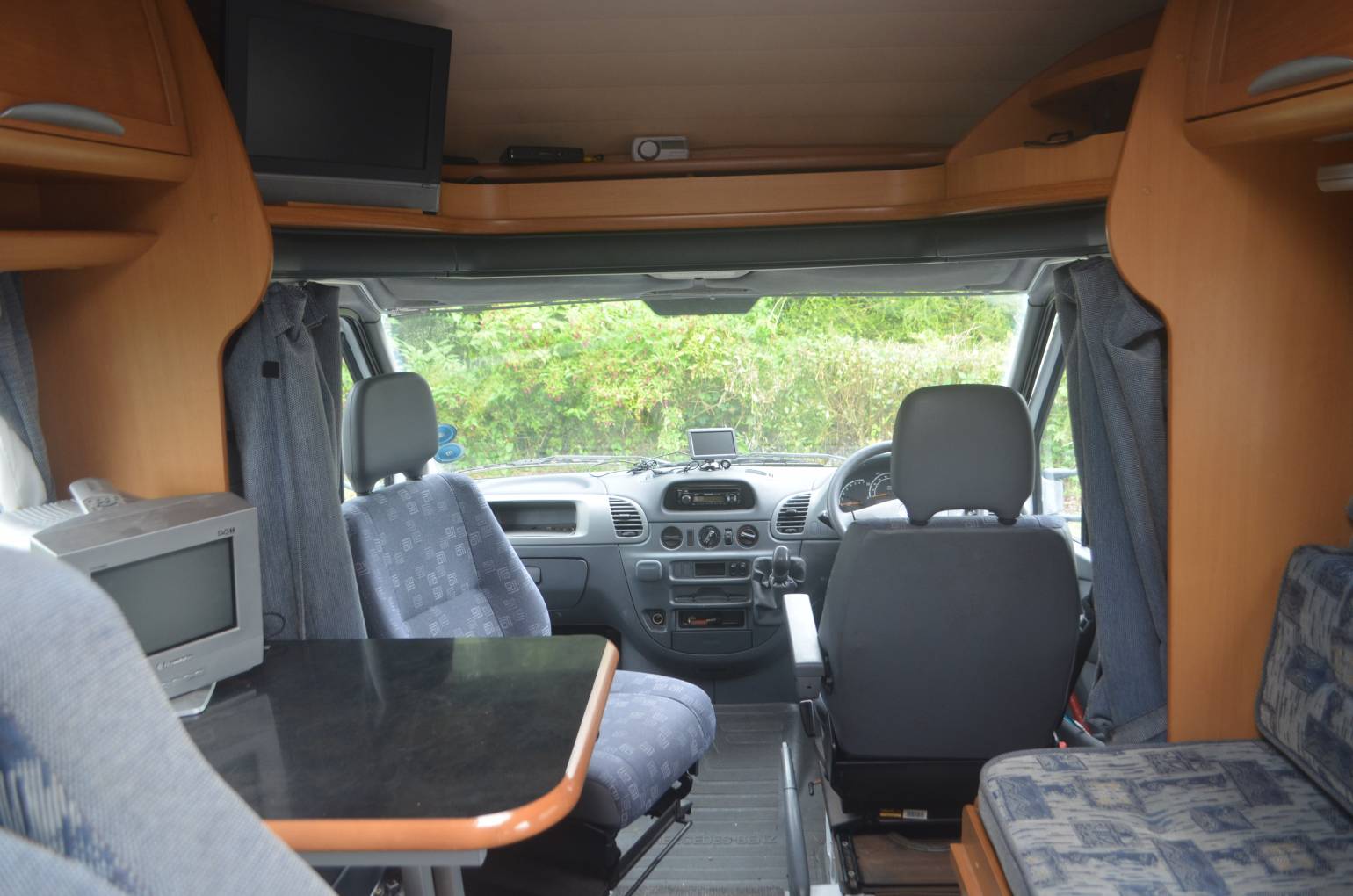 At the front of the motorhome your dining area will convert into a double bed and the captains chairs swivel around giving you additional seating in the lounge.