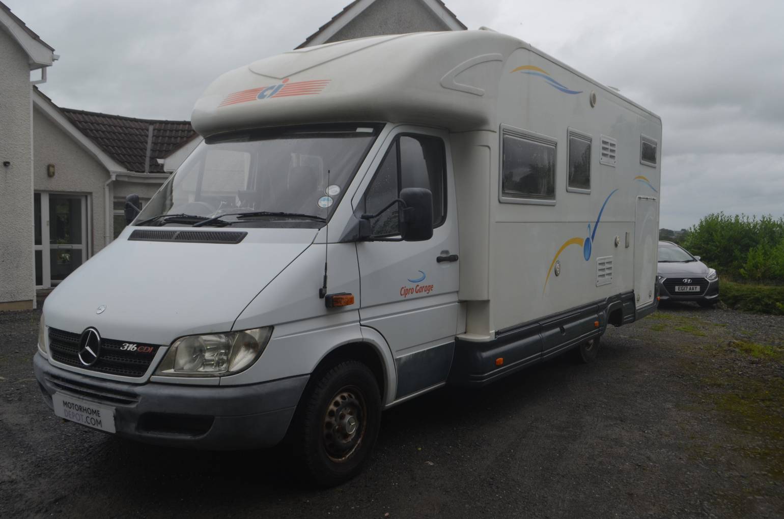 2004 CI CIPRO LOW PROFILE MOTORHOME FOR SALE. Based on a Mercedes Sprinter 316 cdi chassis with a 2.7L engine and manual transmission. Motd until December 2023 with 25,608 miles travelled. The motorhome can be driven on a standard licence and has 4 sleeping places with 4 travelling seat belts.