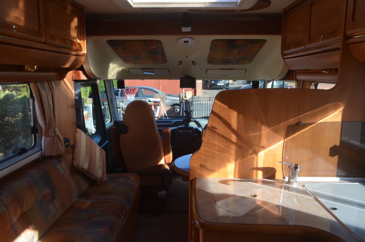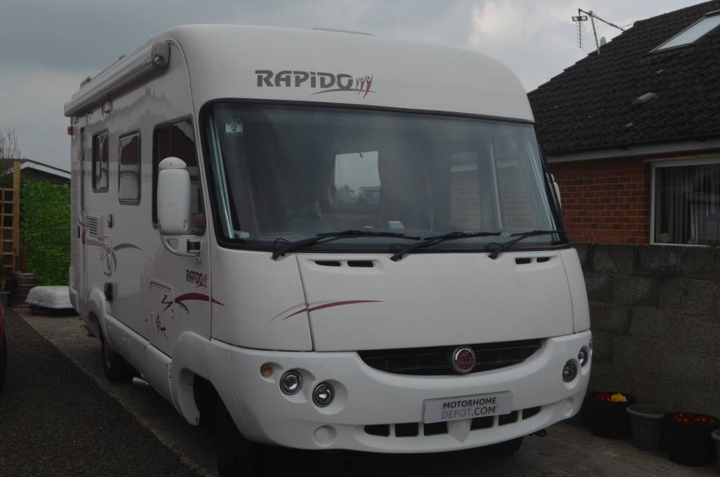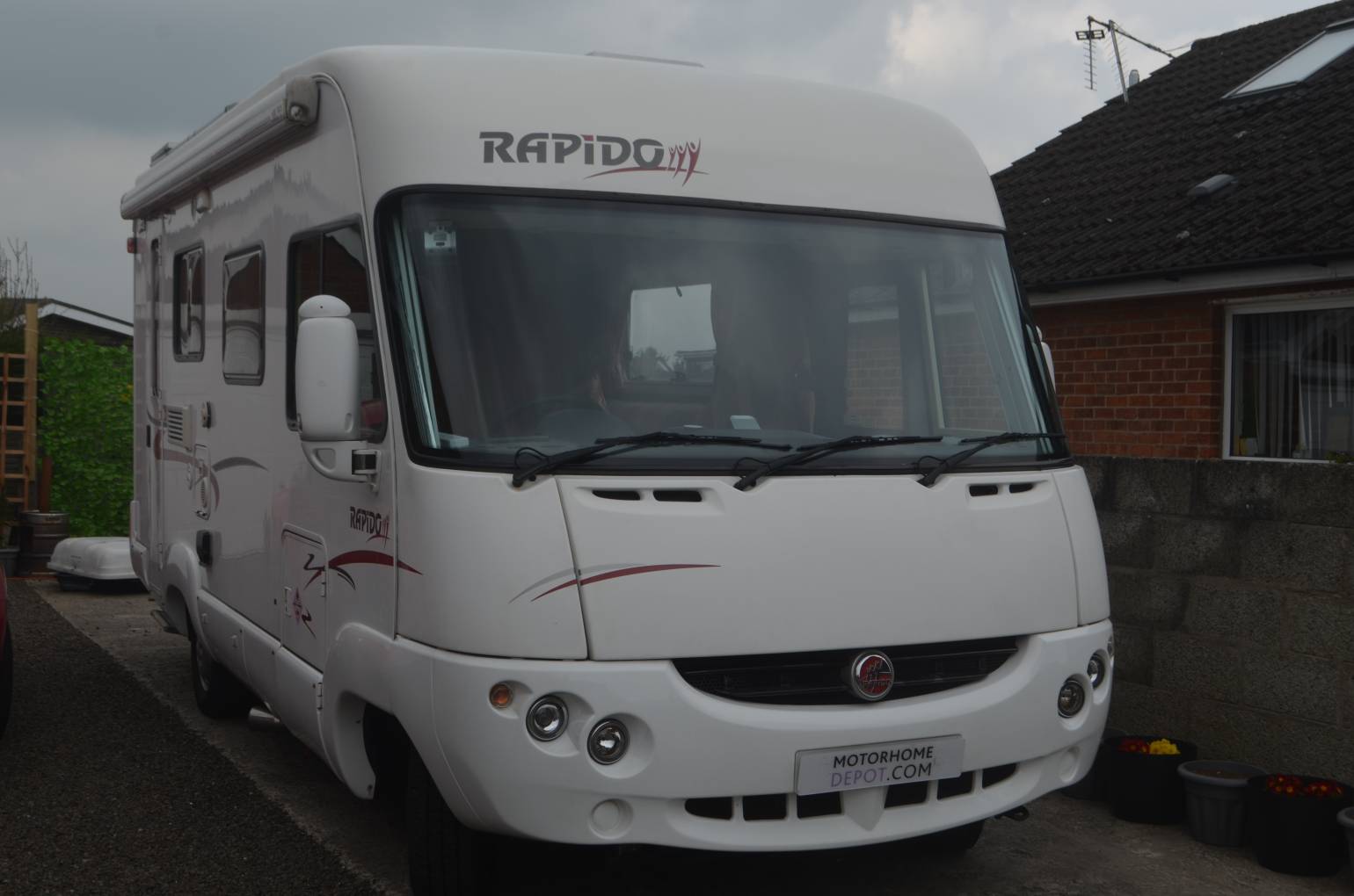 2004 Rapido 924F FOR SALE. This A-Class motorhome is in excellent condition throughout. Sleeping places for 4 people and 4 travelling seatbelts. Based on a Fiat chassis with a 2.8td engine and 5 speed manual gear box. MOT april 2020. Timing belt has been changed, serviced and a new engine battery fitted April 2019. Weighing 3500kg, 6.2 metres in length and 2.3 metres in width. 28,360 miles travelled. Cab area includes 2 swivelling captains chairs, power steering, cab air con, electric window, reverse camera and a radio/cd player. Kitchen area consists of a separate 3 way fridge freezer, 3 ring gas hob burner, oven and sink. Above the cab there is a large double bed and the other bed can be easily made up from the bench seat in the lounge. Dining area is spacious with an extendable table. Your washroom has a separate shower, cassette toilet and wash hand basin. There is a large wardrobe along with lockers situated throughout the habitation area for storage. Extras fitted include a wind out awning ,satellite system, 2 solar panels, 2 outside sockets, tow bar, shower point, roof rails and ladder.