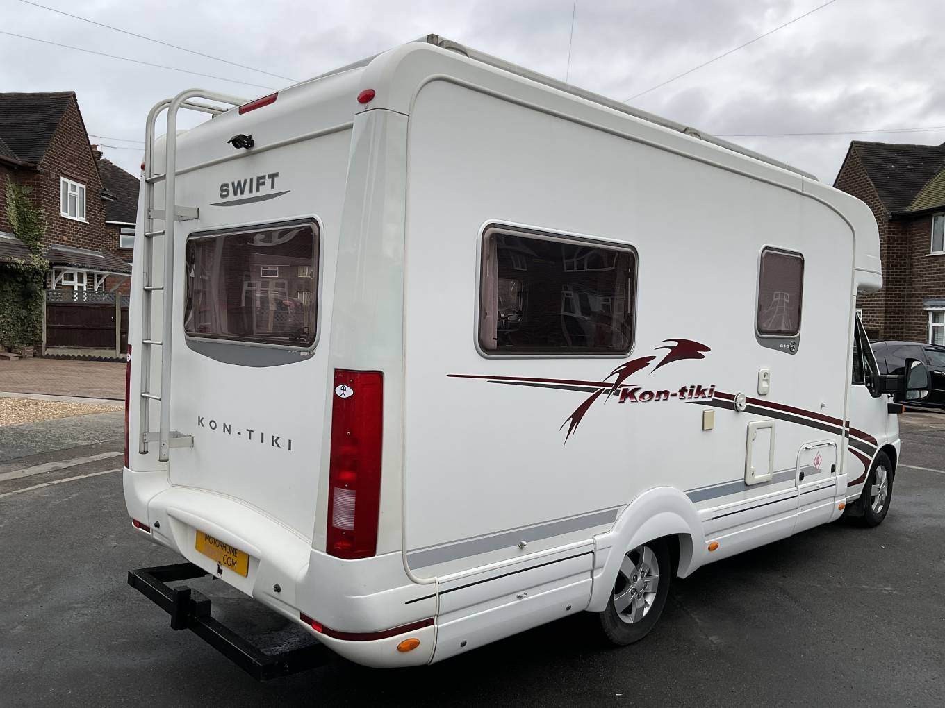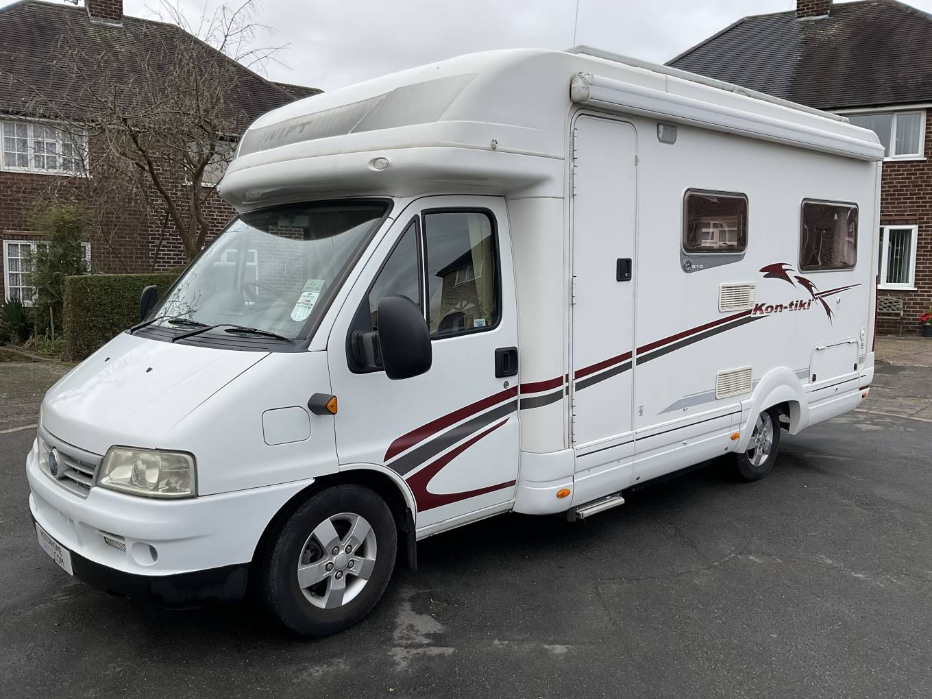 Motorhome Depot Stoke on Trent is delighted to have on offer a 2004 edition of a Swift Kontiki 610. This charming 2 berth, low profile motorhome is based on the Fiat chassis and boasts a powerful 2.8 litre Diesel engine with a 5 speed manual gearbox and includes extensive service history. Starting at the rear, we have a very spacious U shaped lounge which has fantastic storage options both above and below the side benches which can be used as 2 single beds or convert to a massive double if required. The very well equipped kitchen is comprised of a 3 burner gas hob with additional electric ring, grill, oven, hand wash basin and a 3 way fridge. Adjacent to this is the good sized washroom, this again has graet storage and includes vanity hand wash basin, cassette toilet and a good sized seperate sower enclosure. This really is suitable for a varity of uses with its fantastic extras this is definatly a home from home. Please call our friendly sales team for further assistance.