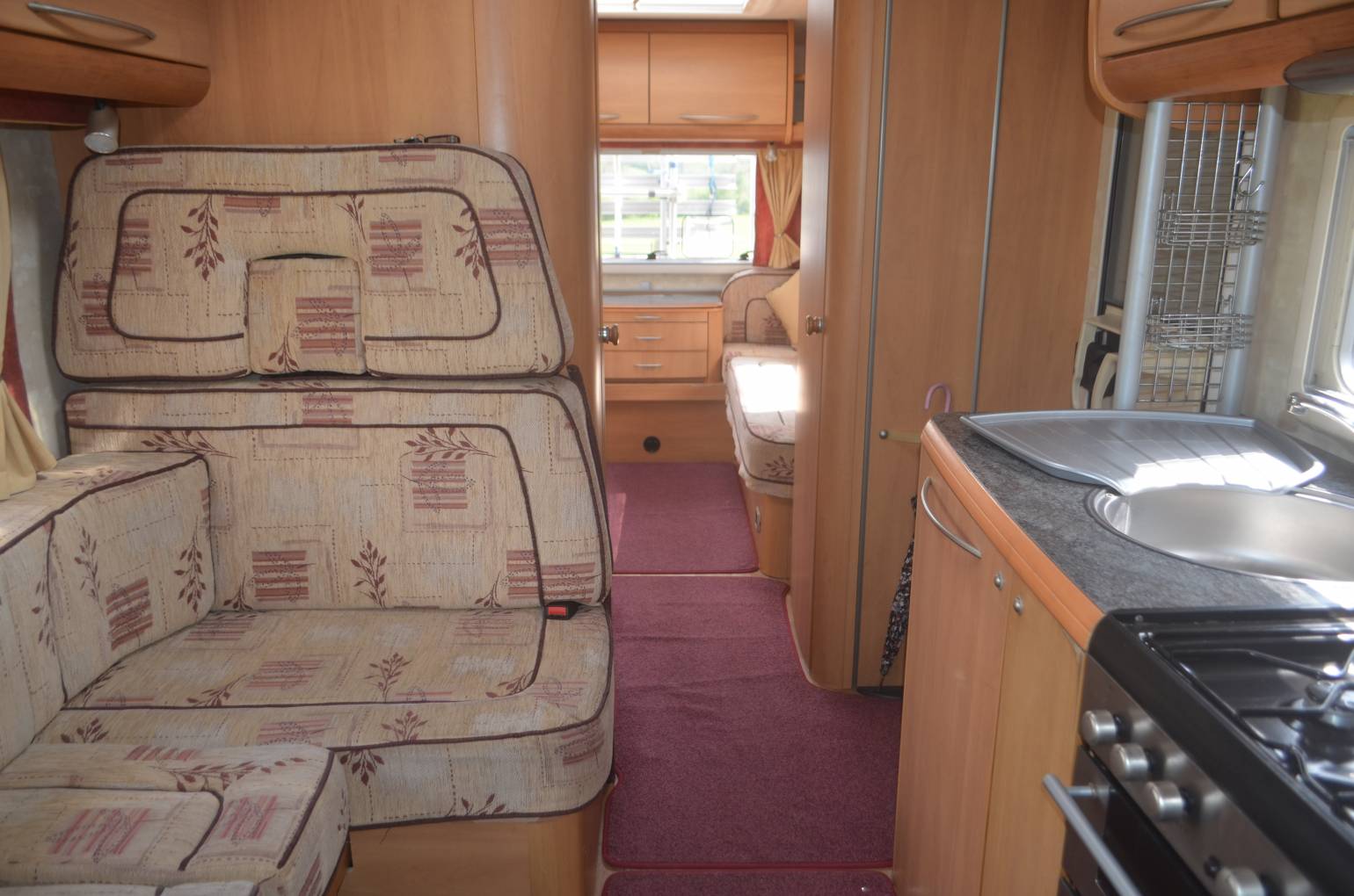 Kitchen is fully equipped with an oven, 3 burner gas hob, grill, sink, microwave and a 3 way fridge freezer.