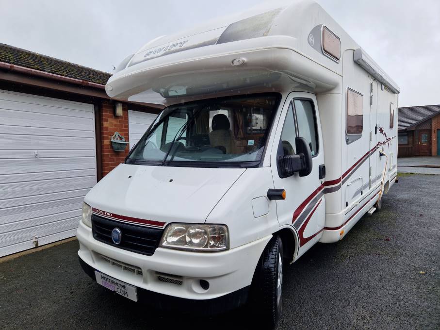 Motor Home Depot Cardiff are pleased to bring to the market this 2004 Swift Kon-Tiki 665 family motorhome. Built on the Fiat Ducato chassis, this is powered by the ultra reliable 2.8 Turbo diesel engine with the 5 speed gearbox. It will come with a new MOT and is in excellent condition having been really cherished by its owner and has only covered 35000 miles from new. It is 7.6m long and weighs 3830KG which means you will need a C1 licence to drive it.