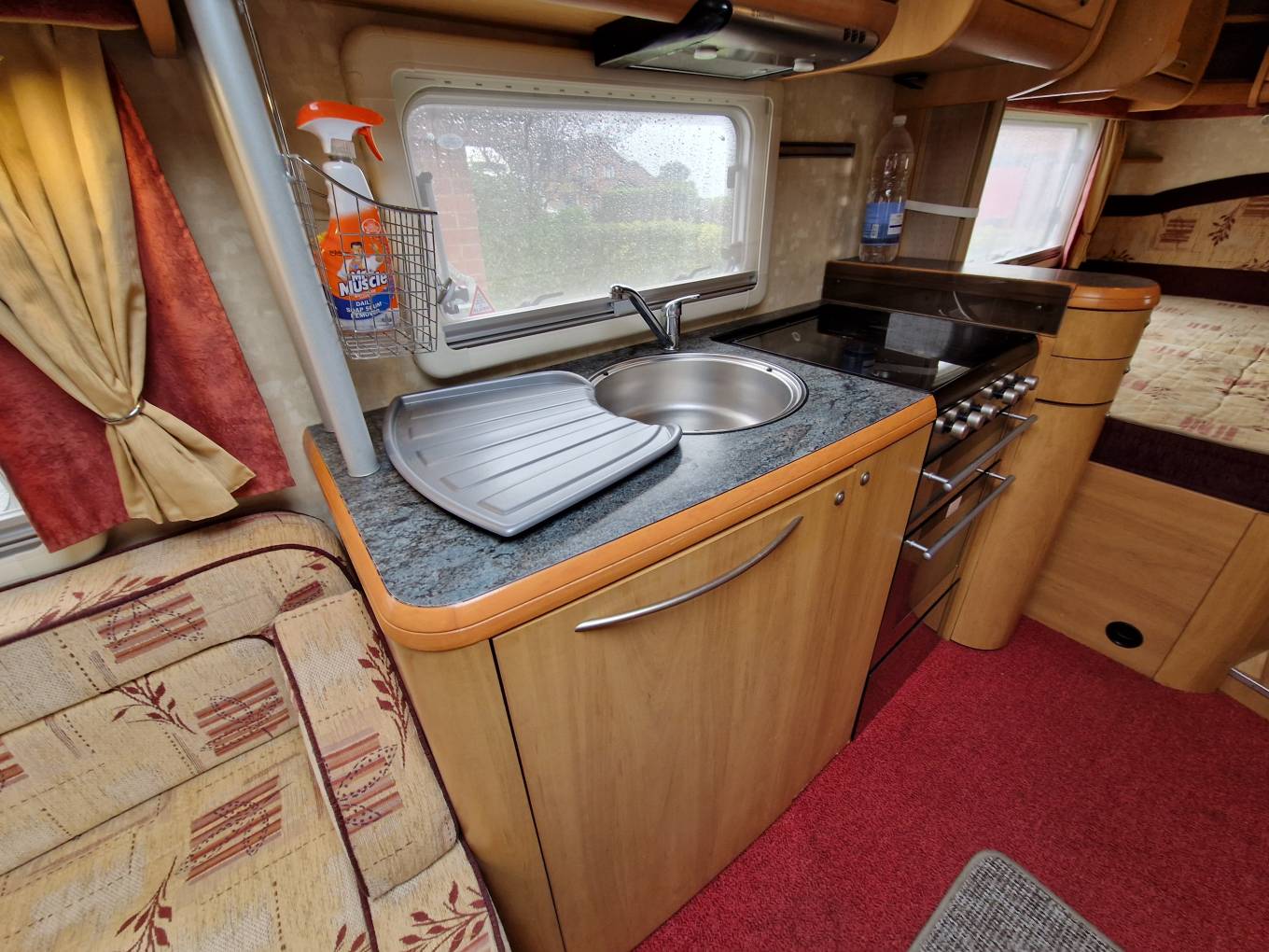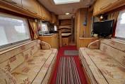 Passing through the lounge to the kitchen area you will find it fully equipped with a 3 way fridge with small freezer compartment, sink and mixer tap, full oven with separate grill compartment, 3 gas 1 electric hob, microwave and plenty of storage above and below.