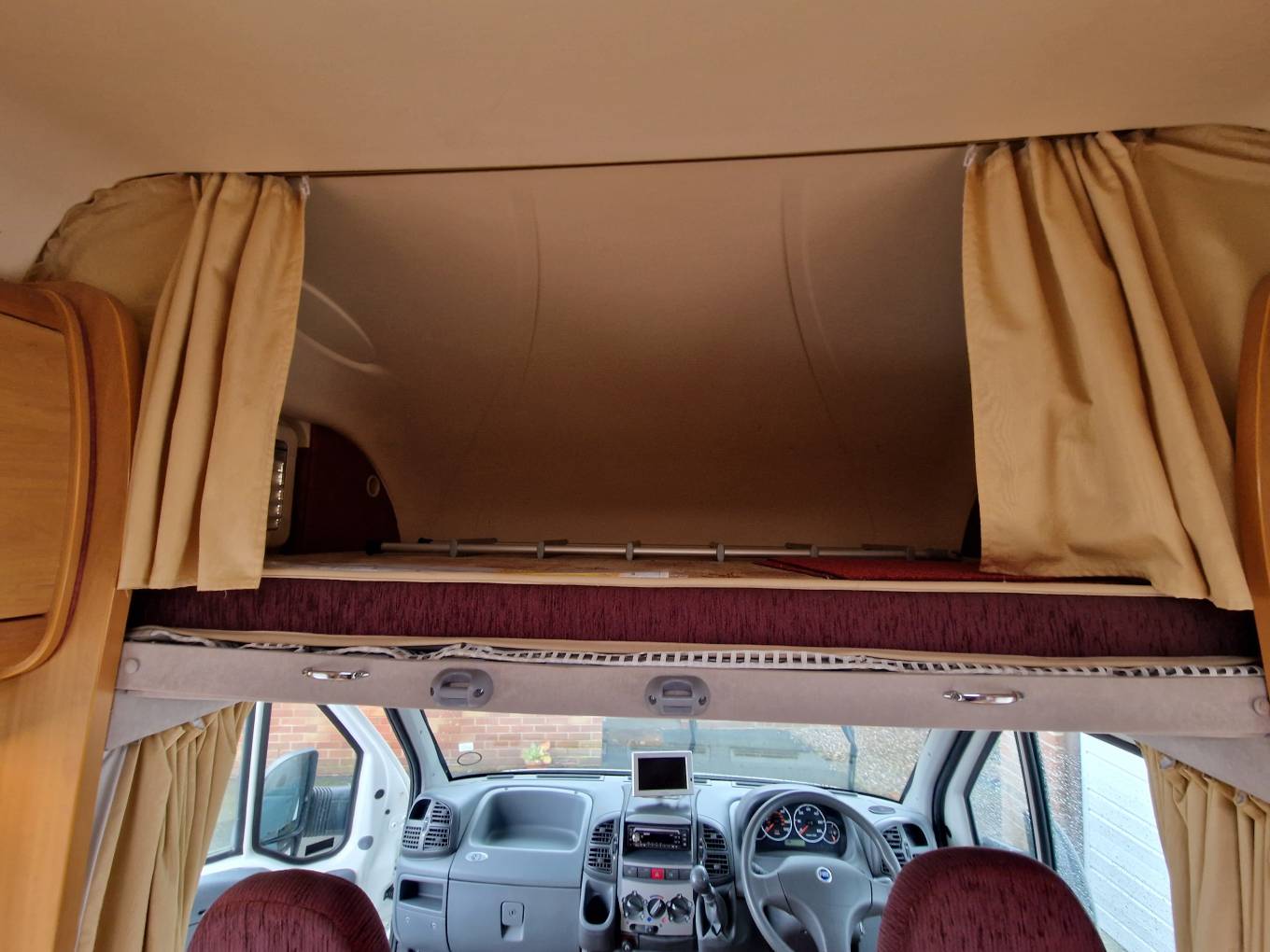 Above the cab area you have a large double over cab bed with windows and curtains either side, reading light and ladders.