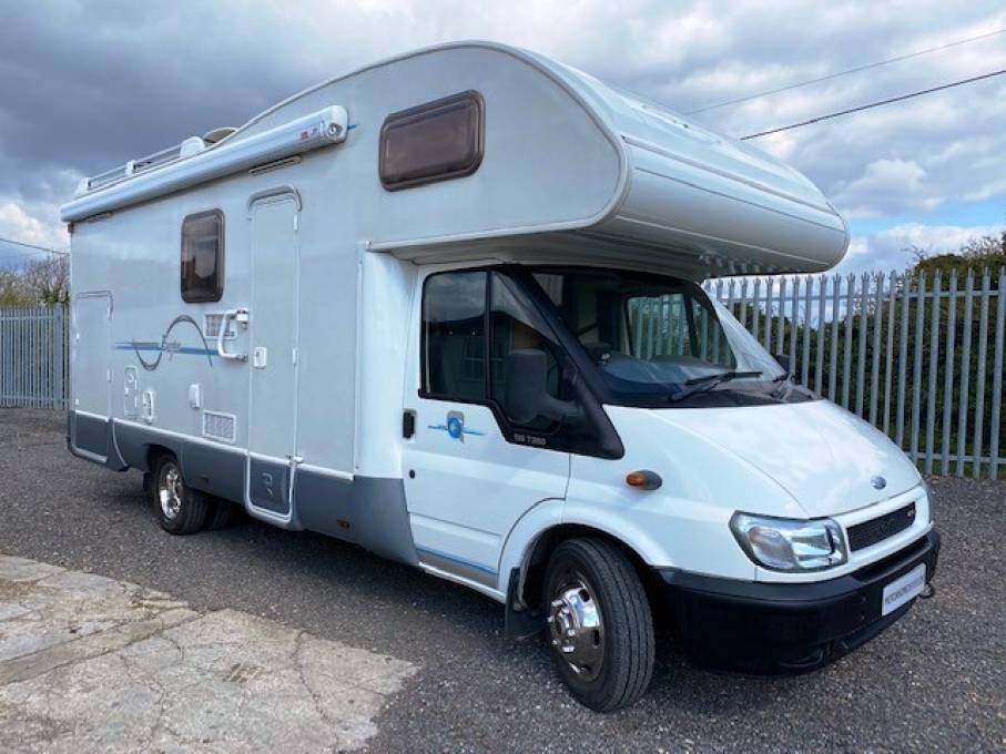 Ideal Moto Cross motorhome, don't miss out! RIMOR EUROPEO NG5, 2005, 6 Berth rear wheel drive Motorhome on a Ford Transit 2.4 TDI, six travelling seats in total so also ideal as a family motorhome. First registered on 1st March 2005, five owners from new and 55,400 miles on the clock. The engine is chain driven so no cam belt to worry about.