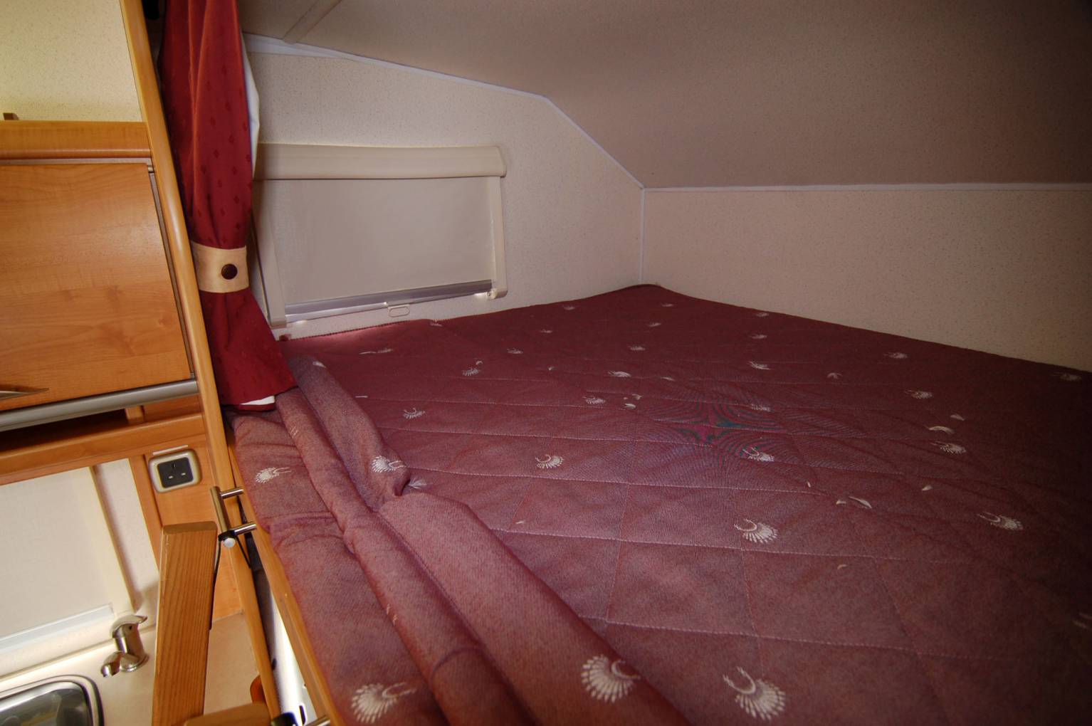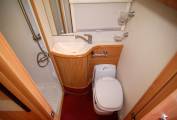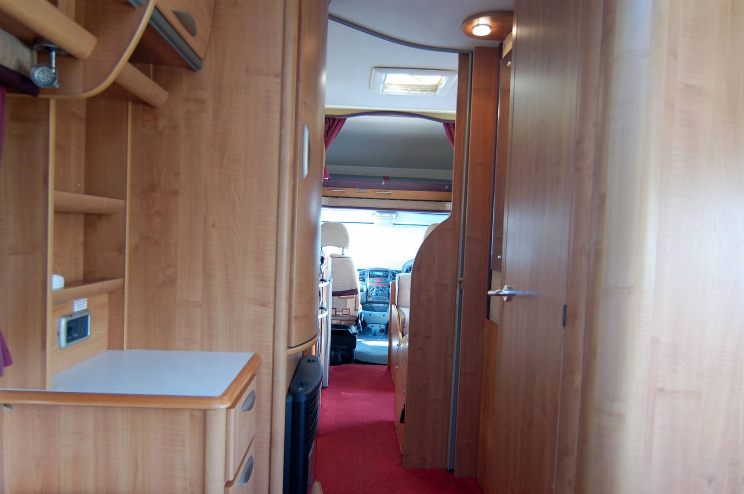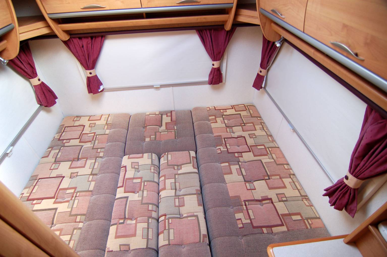 Onboard facilities include a very well equipped kitchen, reversible roof fan, washroom with separate shower cubicle in addition to a toilet and vanity sink, dual fuel heating and hot water systems. For entertainment there is a fitted Avtex TV DVD combo with roof mounted aerial, plus there is an untested fitted Megasat satellite system with roof mounted enclosed dome. Sleeping arrangements are straightforward with a generous overcab bed, central bed made from the dinette and another double at the rear. Outside goodies include the roll out sun canopy, external bbq point and a gas bbq, external shower, 2 bike rack and access to the rear underbed store.