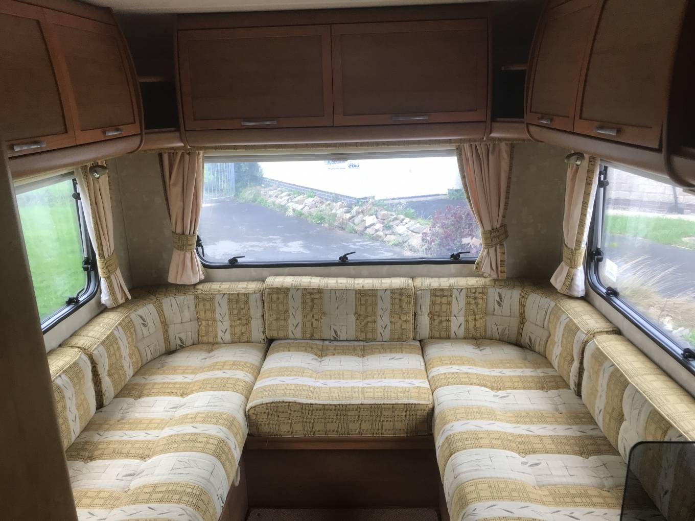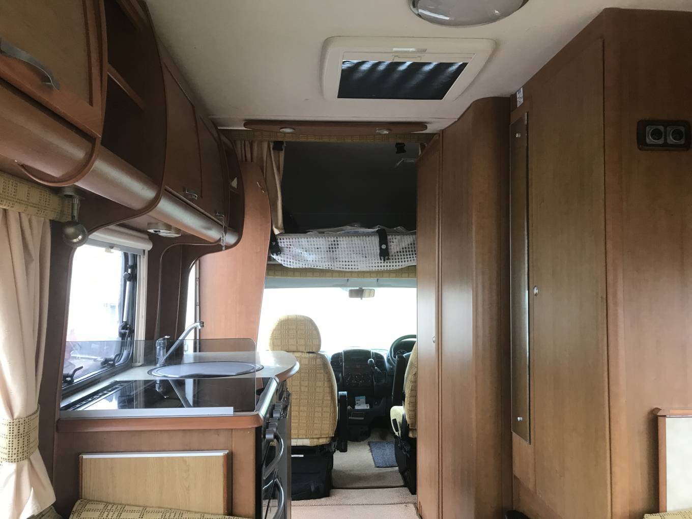 4 berth - 2 seatbelt. Overcab bed and rear lounge.