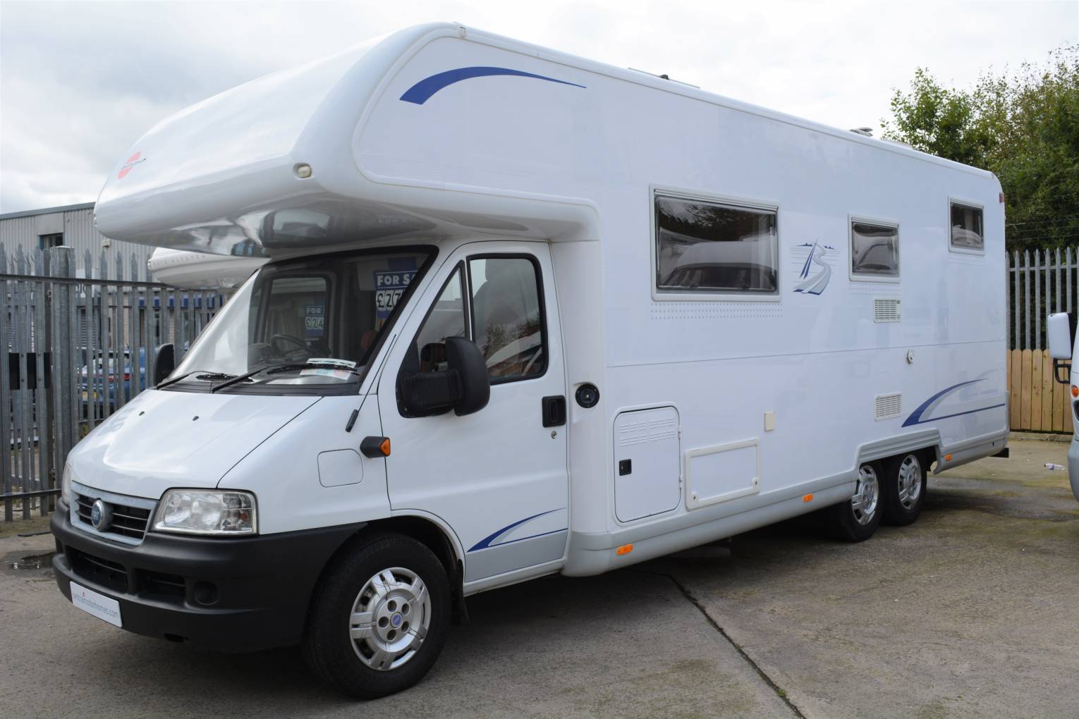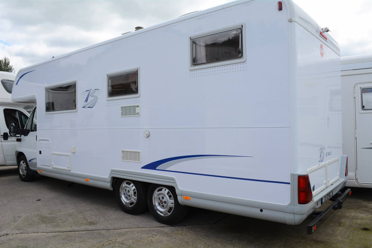 2005 Burstner A747 7 Berth Motorhome for sale. The A747 defines the family Motorhome market with exceptional quality and an endless specification list. Measuring just over 8.1 metres in length with a maximum weight of 5000 kg and requires a category C1 license to drive. This spacious layout includes a large rear garage area with double floor for further storage, rear tranverse double bed, large washroom with shower, kitchen area with hob, oven, fridge, hot water, large dinette area with 4 additional belted travel seats and a large over cab bed. Other features include awning, reverse camera, air conditioning, Alde heating and tow bar. Sale will include full mechanical service, 1 years warranty, habitation service, gas certificate, valet and 1 years warranty. VRT HAS BEEN PAID ON THIS VEHICLE. PLEASE CALL FOR FURTHER DETAILS.
