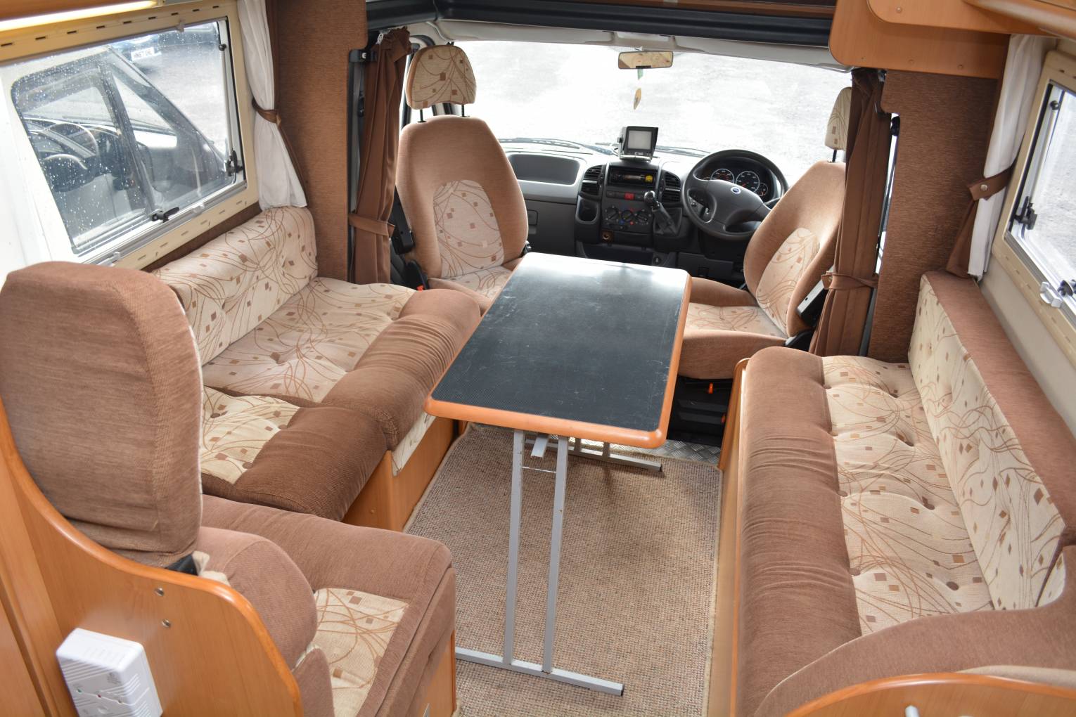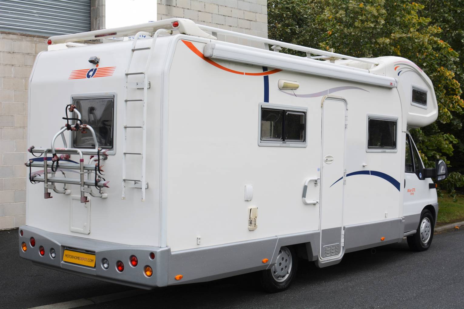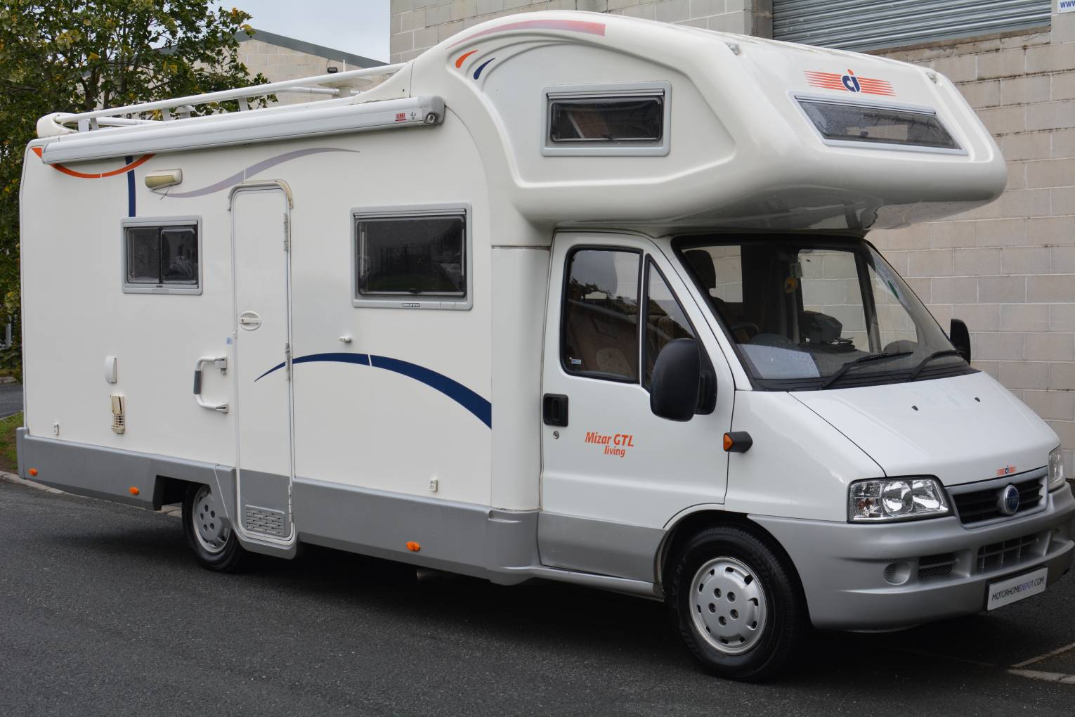 2005 CI MIZAR GTL LIVING for sale. This family Motorhome has been well cared for and the bunk bed layout provides great comfort and space, with an additional storage hold for bulky accessories to the rear. An end washroom includes separate shower, fully equipped kitchen area with oven and grill, large fridge freezer and plenty of storage space. The lounge area on this CI seats 8 persons easily with twin swivel chairs and is complimented by a TV with Satellite receiver. Sleeping places are well catered for with a large over cab bed, twin bunks to rear and the lounge area transforms into a double bed. Based on a Fiat Ducato 2800cc chassis, with a max weight of 3500kg and an overall length of approx 7.2 metres. Other features include bike rack, awning and a reverse camera. 4 new tyres have been fitted recently. Sale includes gas certification and warranty. Please call for further details.