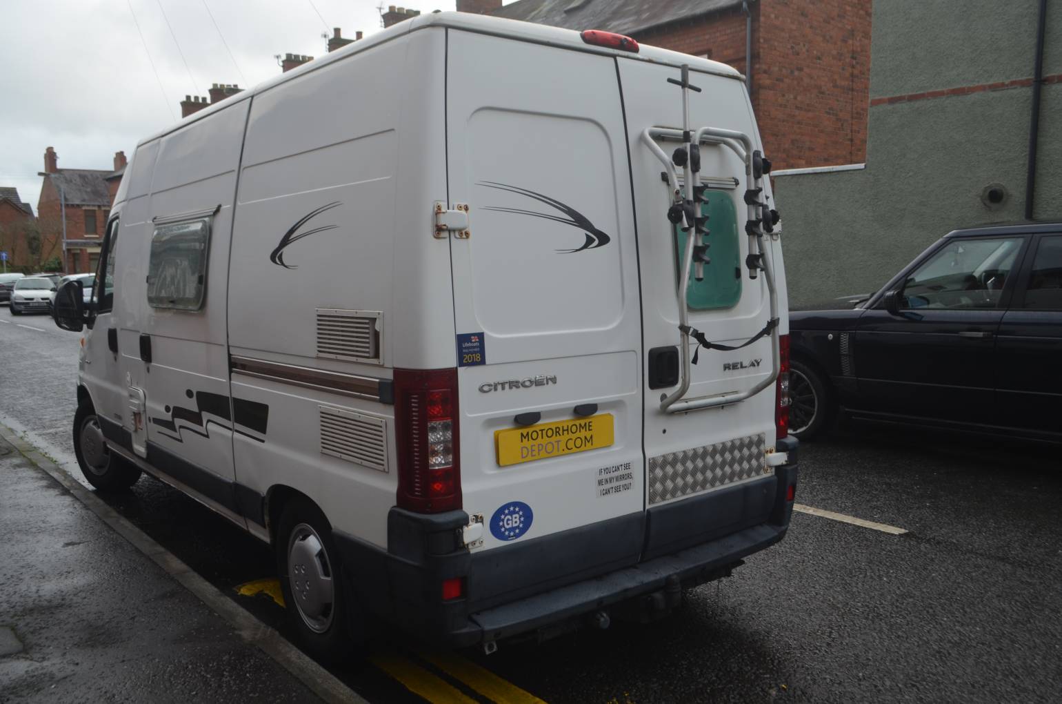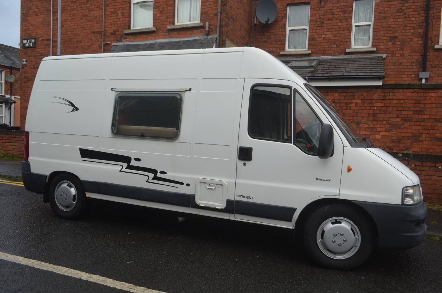 2005 CITROEN RELAY CAMPER VAN CONVERSION FOR SALE. Presented in good condition. 133,274 miles travelled. This 2 berth home conversion has 3 front travelling seat belts. Serviced 5 months ago and has had new brake pads fitted. The cab area has Power assisted steering, 5 speed manual gear box, screens for the windows, radio, reverse camera and sat nav. There is a large sliding door for easy access which opens up onto the lounge area and can be converted to a double bed. Across is your kitchen with good work space, sink, 2 gas burner hob, microwave, small fridge and plenty of storage units. At the rear you have a porta potti and large wardrobe. Eberspacher heating system has been fitted. This conversion has had a computer power point added, lighting throughout the habitation area, 2 x 110 auxillary batteries with split charger, an inverter, 12 volt Tv/Dvd player, 12 volt/240 volt converter, built in battery charger with relay, 2 fire blankets and extiguishers. At the rear you have a bike rack and a tow bar.
