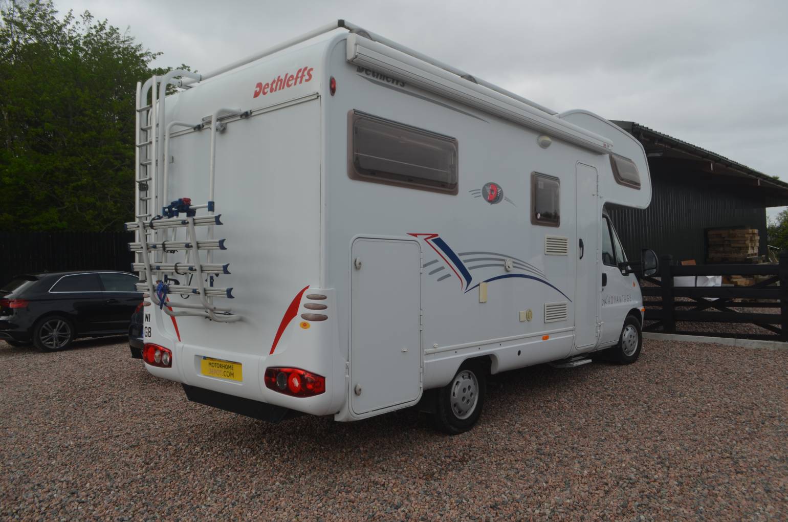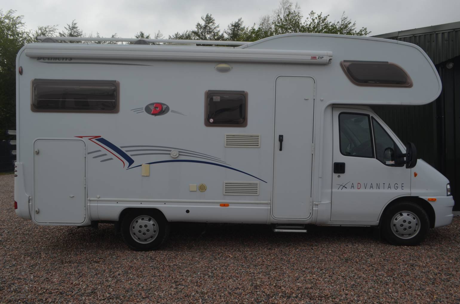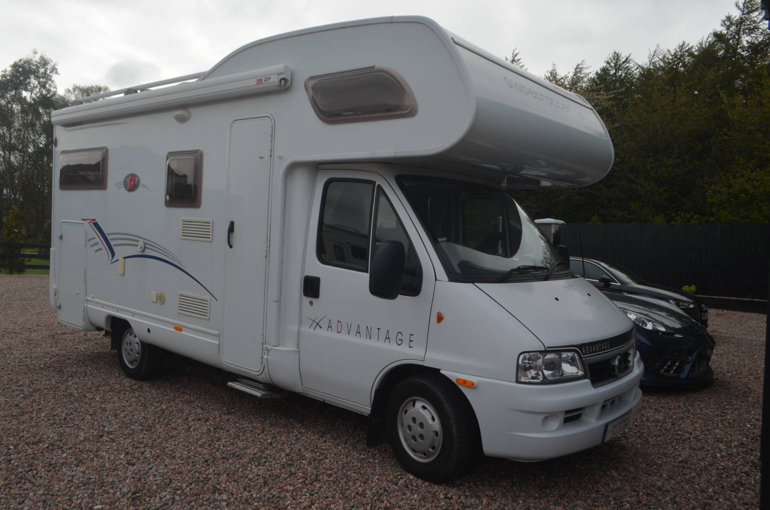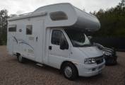 2005 Dethleffs Advantage Globetrotter A6671 FOR SALE. Presented in great condition. Based on a Fiat Chassis, 2.8 engine with a 5 speed manual transmission. Weight 3500kg, length 6.3 metres and width 2.2 metres. Sleeping places for 4 people with 4 travelling seat belts. Mileage 31812. Your cab area includes 2 swivelling captains chairs, radio, power assisted steering, electric windows and silver screens for the windows. Kitchen area consists of a 3 hob gas burner, oven, sink and 3 way fridge freezer. Above the cab is a large double bed with another double bed above the large garage. There is a swing wall washroom with shower. cassette toilet and wash hand basin. Plenty of storage situated throughout the habitation area. Extras include a wind out awning, bike rack and ladders at the rear.
