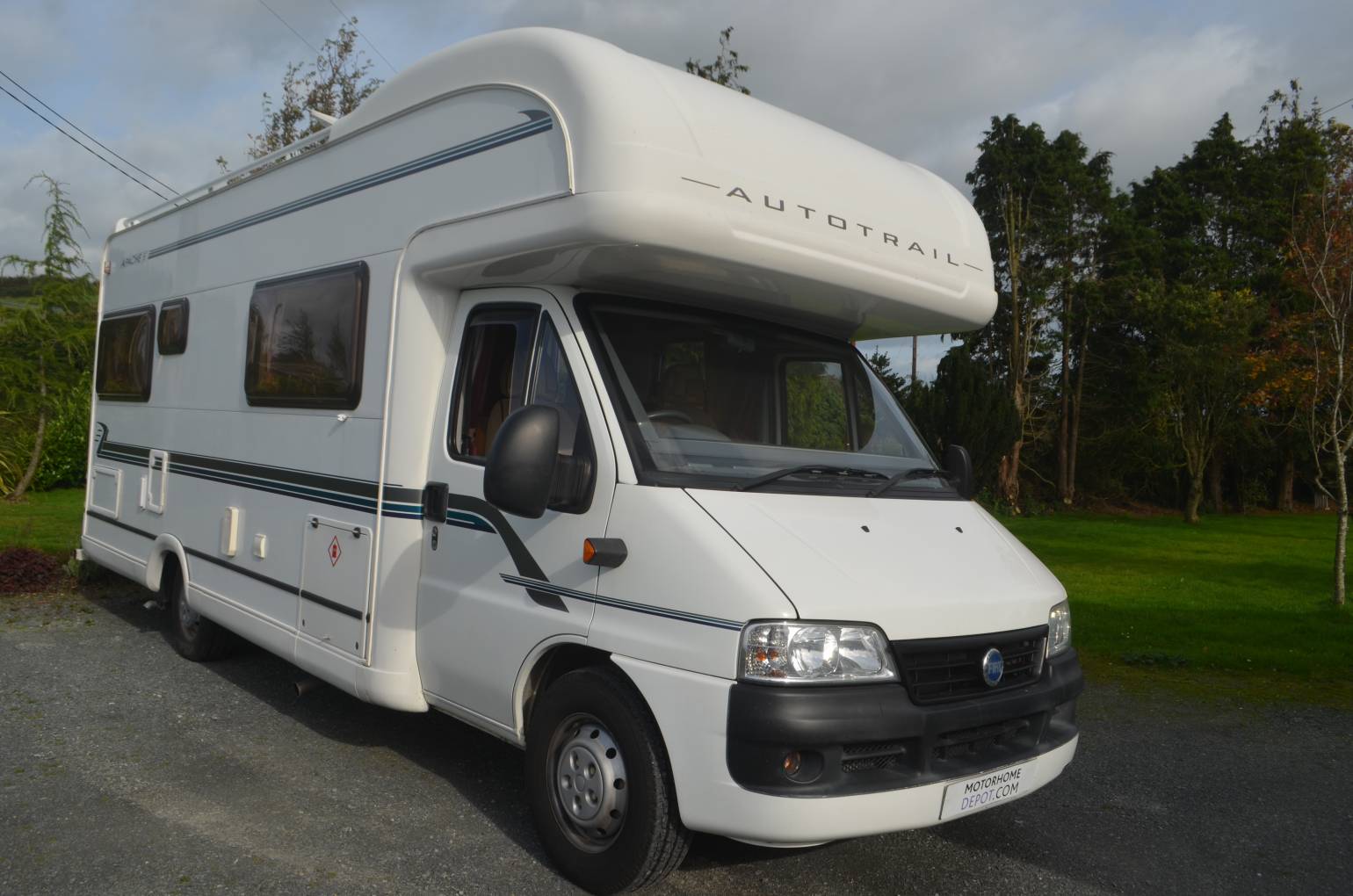 2006 AUTOTRAIL APACHE 700 FOR SALE. This luxury motorhome is presented in excellent condition throughout. Based on a Fiat Ducato chassis with a 2.8 engine and 6 speed manual transmission. Mileage 18,722. MOT Jan 2020. Weight is 4005kg, length approximately 7.54 metres and width 2.35 metres. Cab area has central locking, cruise control, radio, sat nav and a reverse camera. This family layout will sleep 6 people with 4 travelling seat belts. Large double bed above the cab. Centre dinette will convert into a double and your U shaped lounge at the rear will also convert into a large comfortable double bed. Kitchen area has a full sized cooker, sink and a 3 way fridge freezer. Bathroom is a good size with a separate shower, cassette toilet and wash hand basin. Storage lockers and wardrobe situated in the habitation area. There is a door between the U shaped lounge and the front of the motorhome that closes to give some privacy. Extras fitted include a wind out awning, outside shower point, bbq point, satellite, Tv/Dvd player and air con fitted in the habitation area.