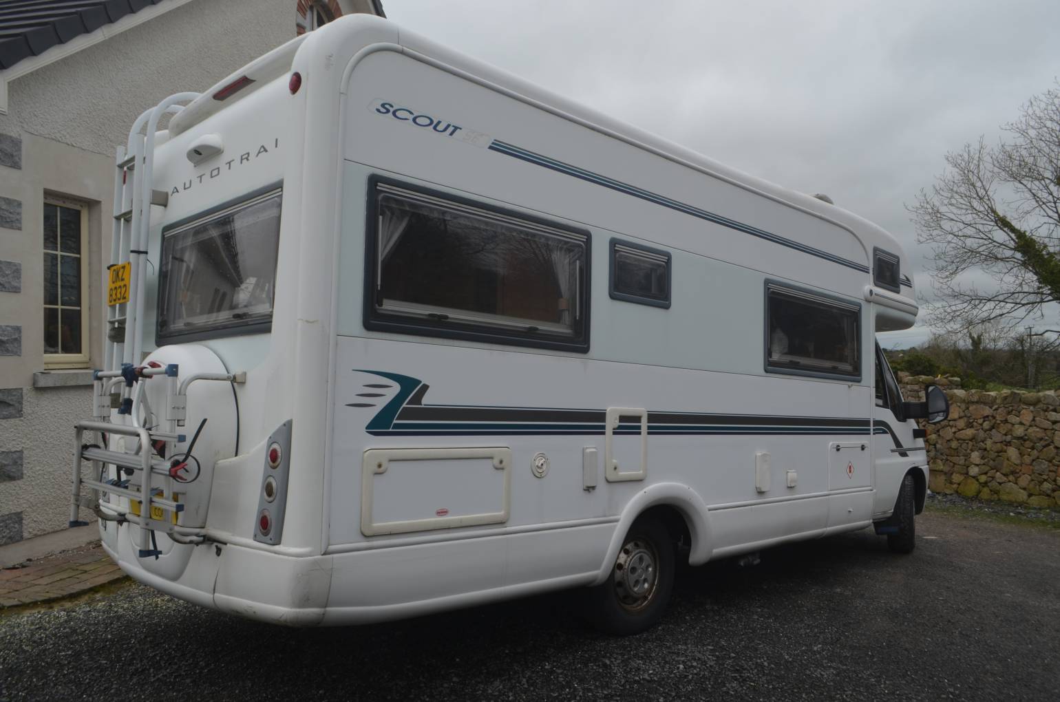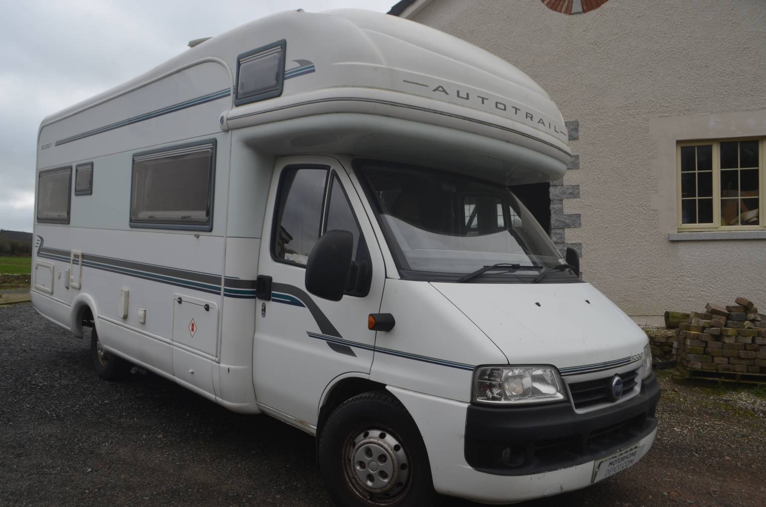 2006 AUTOTRAIL SCOUT SE FOR SALE. Based on a fiat chassis with a 2.8Td engine and 5 speed manual transmission. Mileage 56184. Length approx 7.46 metres, width 2.3 metres. Various age related marks to the external bodywork but otherwise in good condition. This layout will sleep 6 people and has 4 travelling seat belts. Rear U shaped lounge converts into a double bed and has a sliding privacy blind. Bathroom has a separate shower, Thetford cassette toilet and wash hand basin. Kitchen area has a full sized cooker with hob, oven, grill and a 3 way fridge freezer. Dinette has a detachable table and will also convert into another double bed. Above the cab you have another large double bed. Great storage throughout the habitation area. There was a new engine battery and two new leisure batteries fitted. Extras include a Tv, awning, reverse camera, bike rack, outside shower point and a gas point.