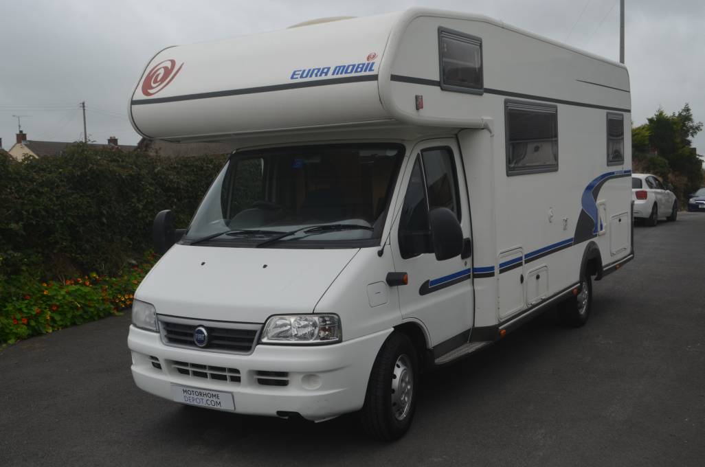 2006 EURA MOBIL 665HS FOR SALE. PRESENTED IN GOOD CONDITION THROUGHOUT. BUILT ON A FIAT DUCATO CHASSIS WITH A 2.8 JTD ENGINE, 5 SPEED MANUAL GEARBOX. THIS MODEL WILL SLEEP UP TO 6 PEOPLE COMFORTABLY WITH 4 TRAVELLING SEATBELTS. MAXIMUM WEIGHT IS 3500KG, MEASURING APPROXIMATELY 6.95 METRES IN LENGTH AND 2.3 METRES IN WIDTH. MILEAGE AT PRESENT IS 18,360. THE CAB AREA HAS HEIGHT ADJUSTED SEATS, RADIO, CENTRAL LOCKING AND AIRCON. THE DOUBLE FLOOR IS INSULTATED AND HEATED.. ABOVE THE CAB THERE IS A LARGE DOUBLE BED WITH 2 SLEEPING PLACES ANOTHER 2 SLEEPING PLACES AT THE BACK WHERE YOU HAVE A U SHAPED LOUNGE AND ANOTHER 2 AT YOUR DINETTE. YOUR KITCHEN IS SITUATED IN THE MIDDLE WITH A FULL SIZED FRIDGE AND FREEZER, 3 HOB GAS BURNER, SINK AND DRAINER. WASHROOM IS A GOOD SIZE WITH A LARGE SHOWER, TOILET AND WASH HAND BASIN. THERE IS PLENTY OF STORAGE IN THE HABITATION AREA AND A LARGE WARDROBE WHEN ENTERING THE MOTORHOME. EXTRAS INCLUDE A TV, WIND OUT AWNING AND THE LEISURE BATTERY IS 6 MONTHS OLD.