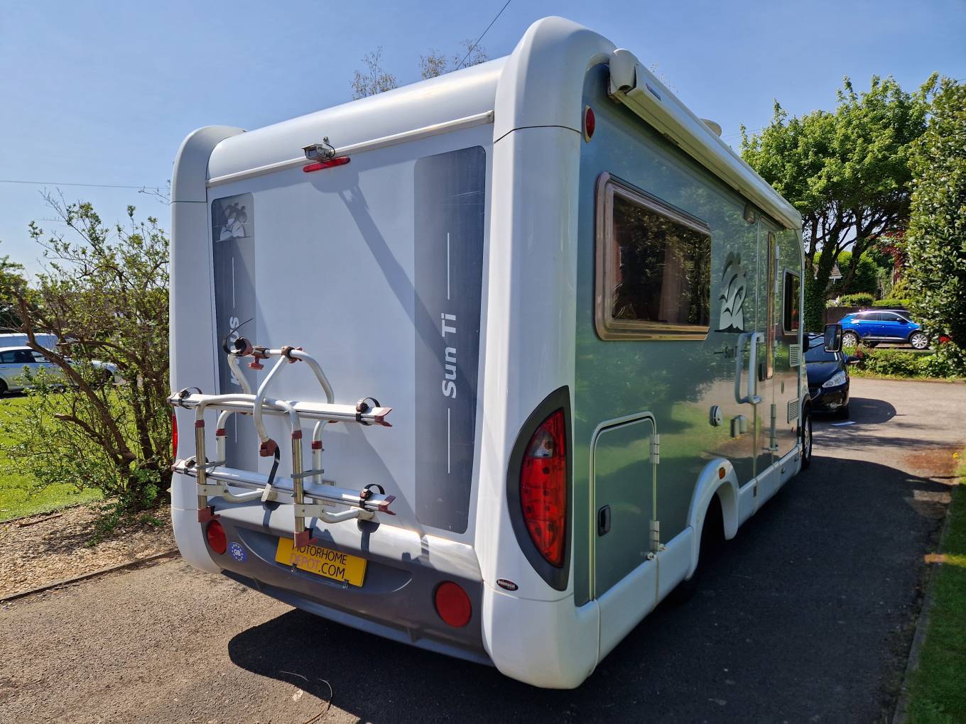 Also included with the motorhome is an alarm, awning,2xTV, digital satellite aerial, cab air conditioning, bike rack, external gas connector, two leisure batteries and an excellent solar system which enables off-grid camping .The Gas system can be filled at a normal petrol station so no fiddling about with bottles. Reverse parking is made safer with the reversing camera and monitor.