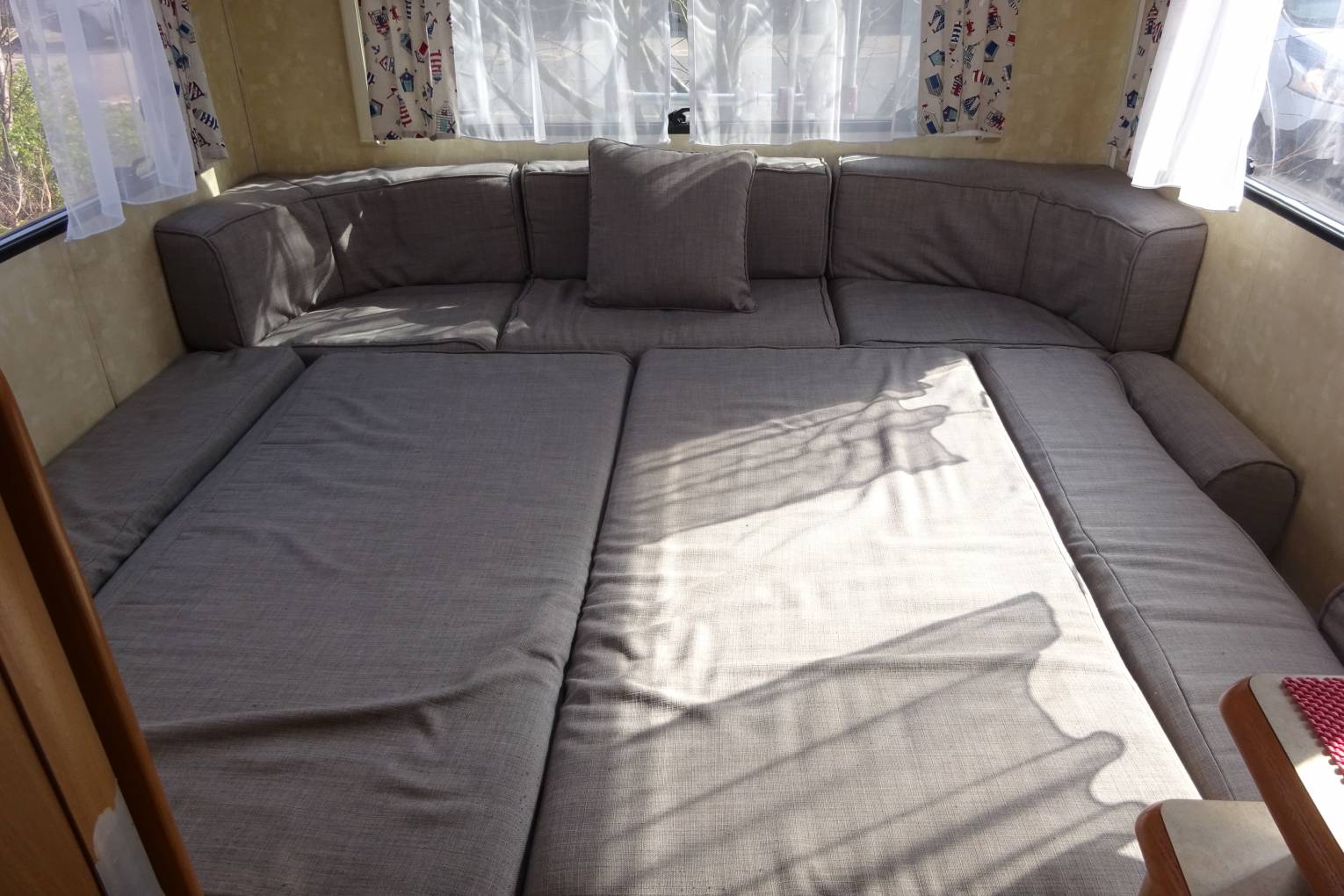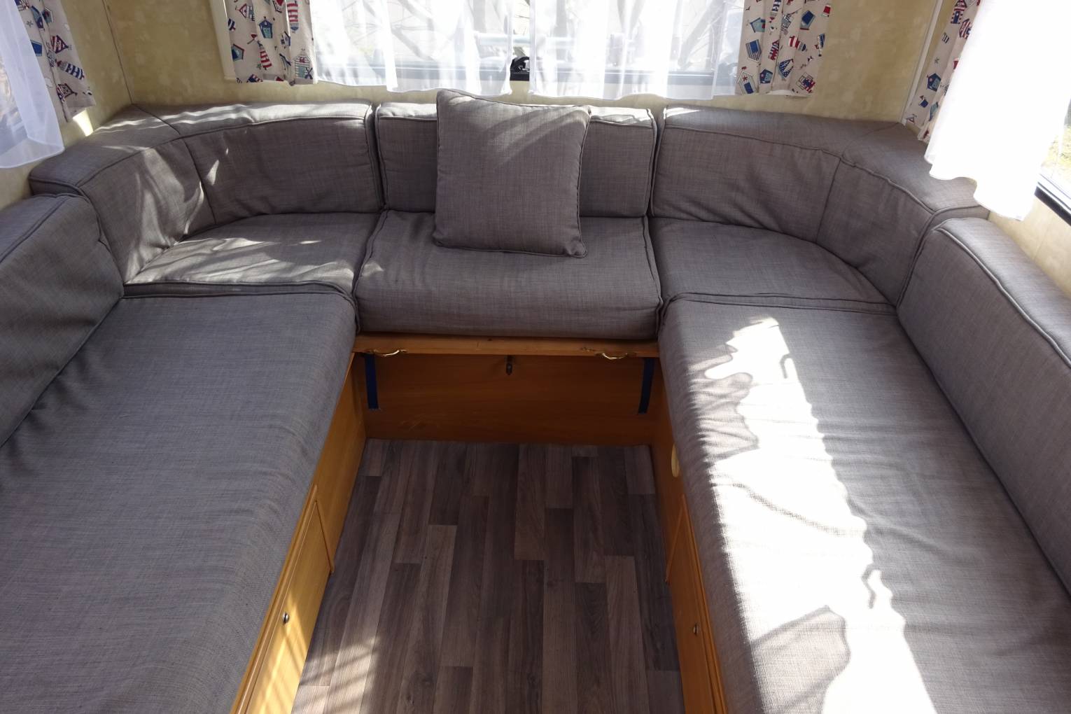 * Central Dinette area with 4 x 3 point harness seat belts. This area also converts into a double bed * U shaped lounge with panoramic windows and recently re-upholstered