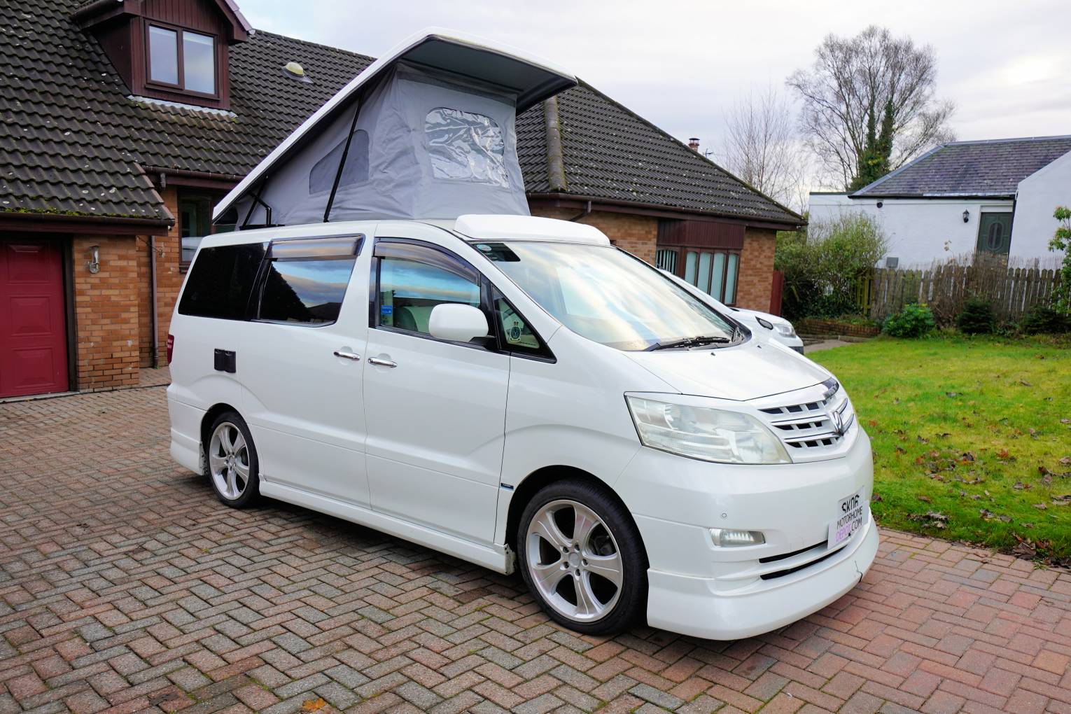 For sale we have a 2006 Toyota Alphard pop-top campervan with 4-berths and 4-seatbelts.