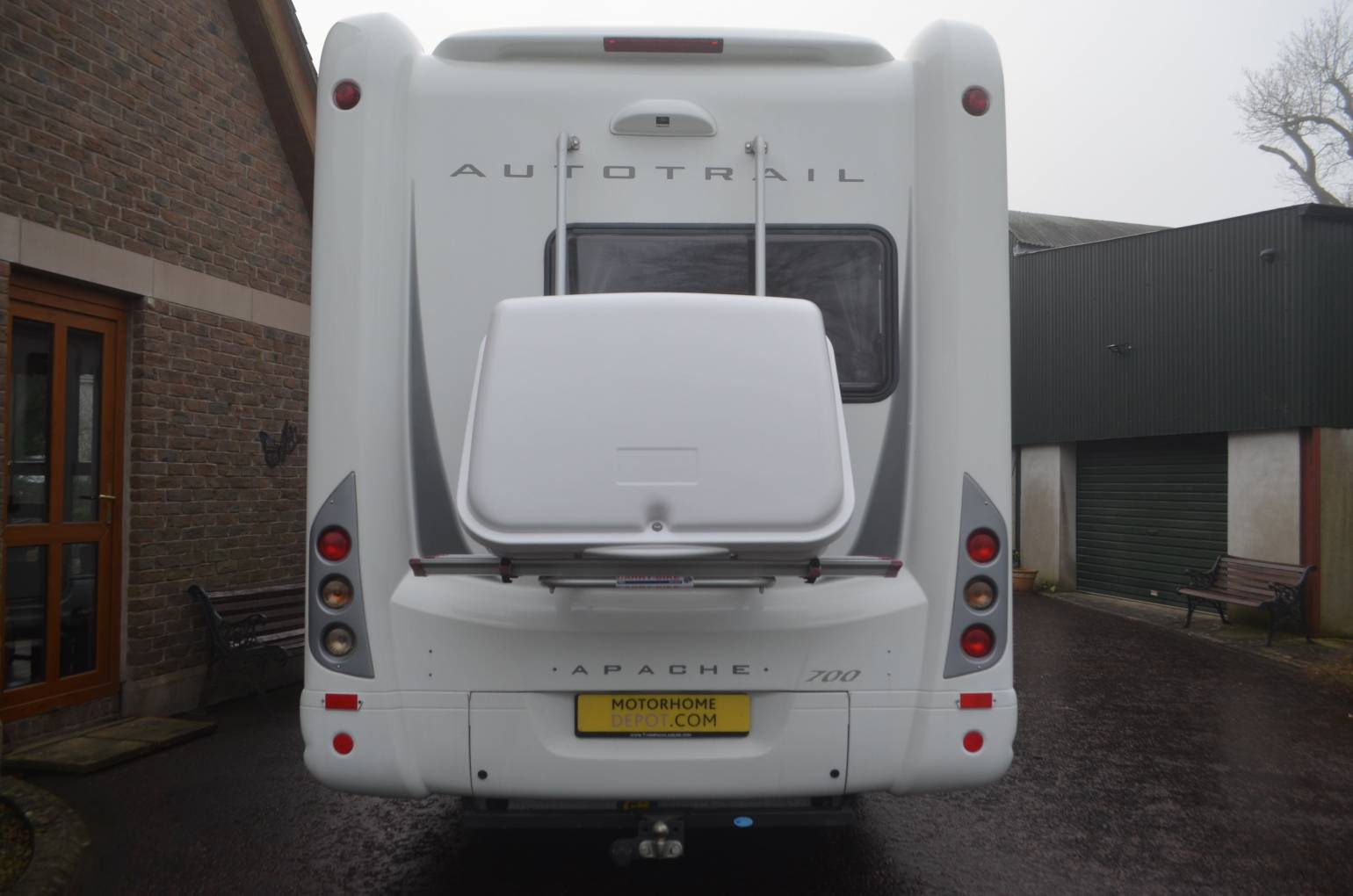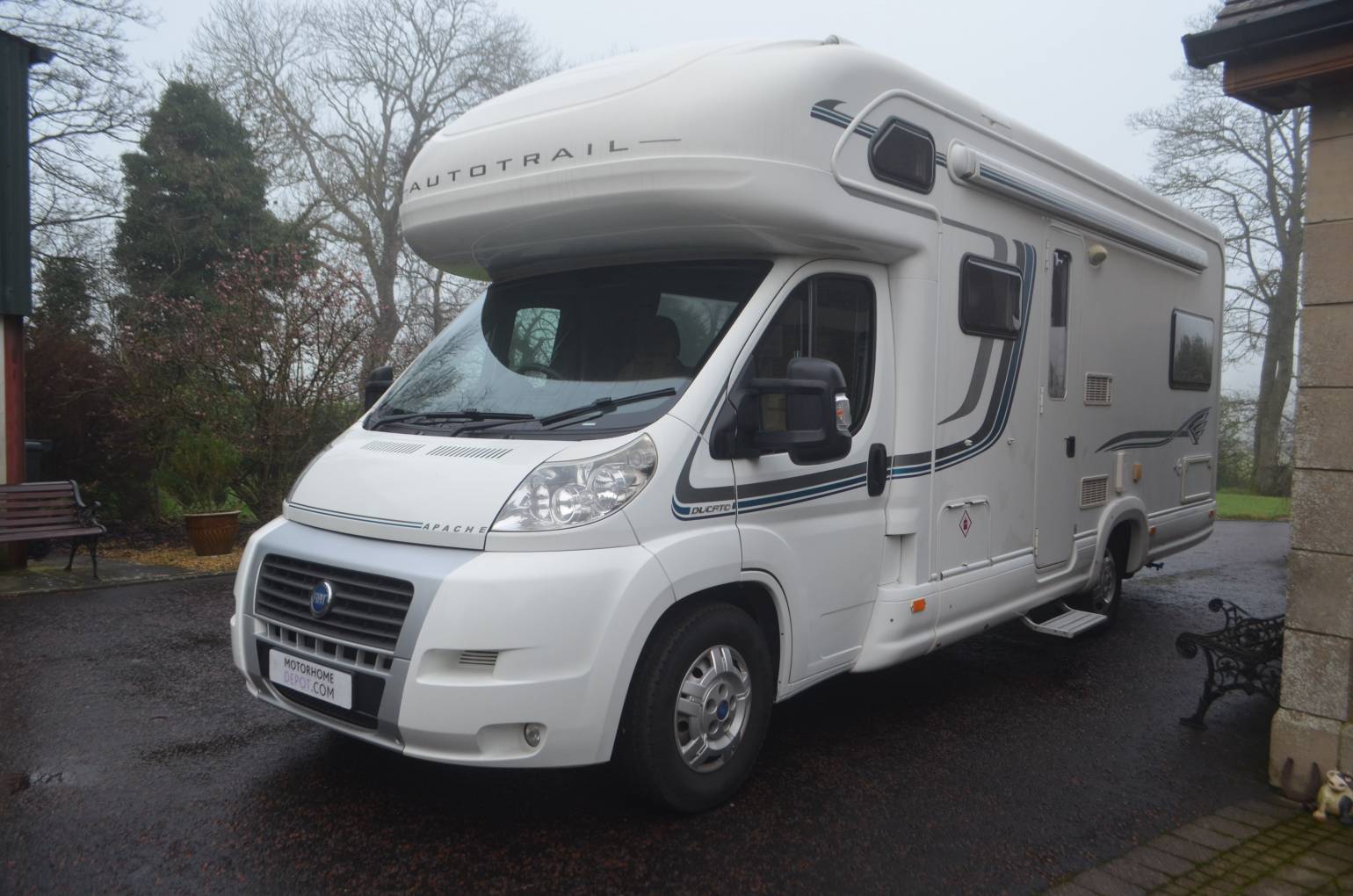 2007 AUTOTRAIL APACHE 700 FOR SALE. Presented in excellent condition. Based on a Fiat Ducato chassis with a 2.3 engine and a 6 speed manual transmission. 22,300 miles travelled. C1 is needed to drive the motorhome as it weighs 4005kg, length is approximately 7.4 metres and width 2.3 metres. Sleeping places for 6 people and 4 travelling seat belts available. At the rear you have a large U shaped lounge that will easily convert into a large double bed. Bathroom is compact with a separate shower, wash hand basin and a cassette toilet. The central kitchen has a full sized cooker with a 3 gas burner hob, grill, oven, sink and a 3 way fridge freezer. The dinning area will also convert into a double bed. Cab area has a captains chair that will swivel onto the dinning area, cruise control, cab air con, electric mirrors, electric windows, radio and a reverse camera. Above the cab there is another large double bed for 2 people. Extras fitted to the motorhome include a bike rack, storage box, tow bar, solar panel, 2 gas bottles, 2 leisure batteries, maxi dome satellite, Tv and a Fiamma awning.