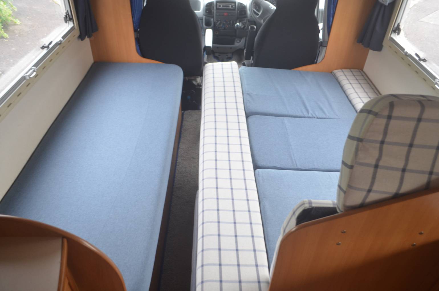 In the lounge/dining area you have a long bench seat that can be used as a single bed and the dinette area can be easily converted to a comfortable double bed. Above the cab area you have another 2 sleeping places.